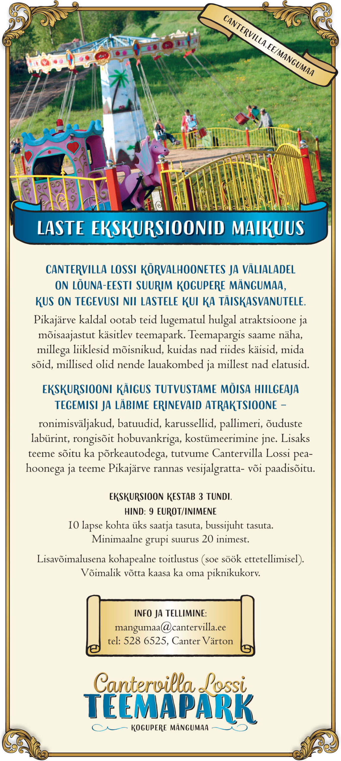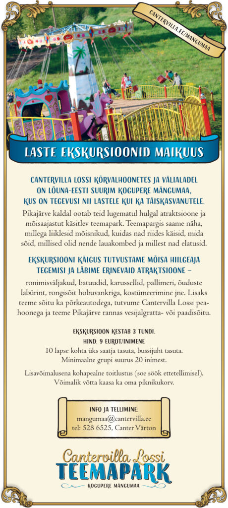 Lisainfo telefonil 5340 3523 ja info@cantervilla.ee.