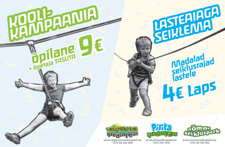Kutsume kooliperet loodusesse, et veeta lõbus ja aktiivne päev. Kevadise koolikampaaniaga on pilet õpilasele 9 eurot ning õpetaja seikleb tasuta.