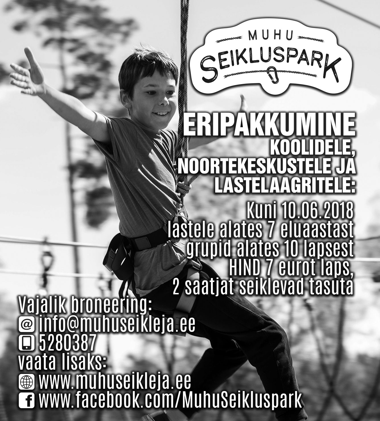 Pargis ootab ees toetav meeskond, kes juhendab, innustab, motiveerib ja kui vaja, aitab. Kõike seda rohkem kui 1200 meetri ulatuses kulgeval kaheksal rajal ning kokku 500 meetri pikkustel õhusõitudel. Koolidele on meil superpakkumised. Kes mingil põhjusel sobivat pakkumist ei leia, võtku julgesti ühendust, vaatame koos.