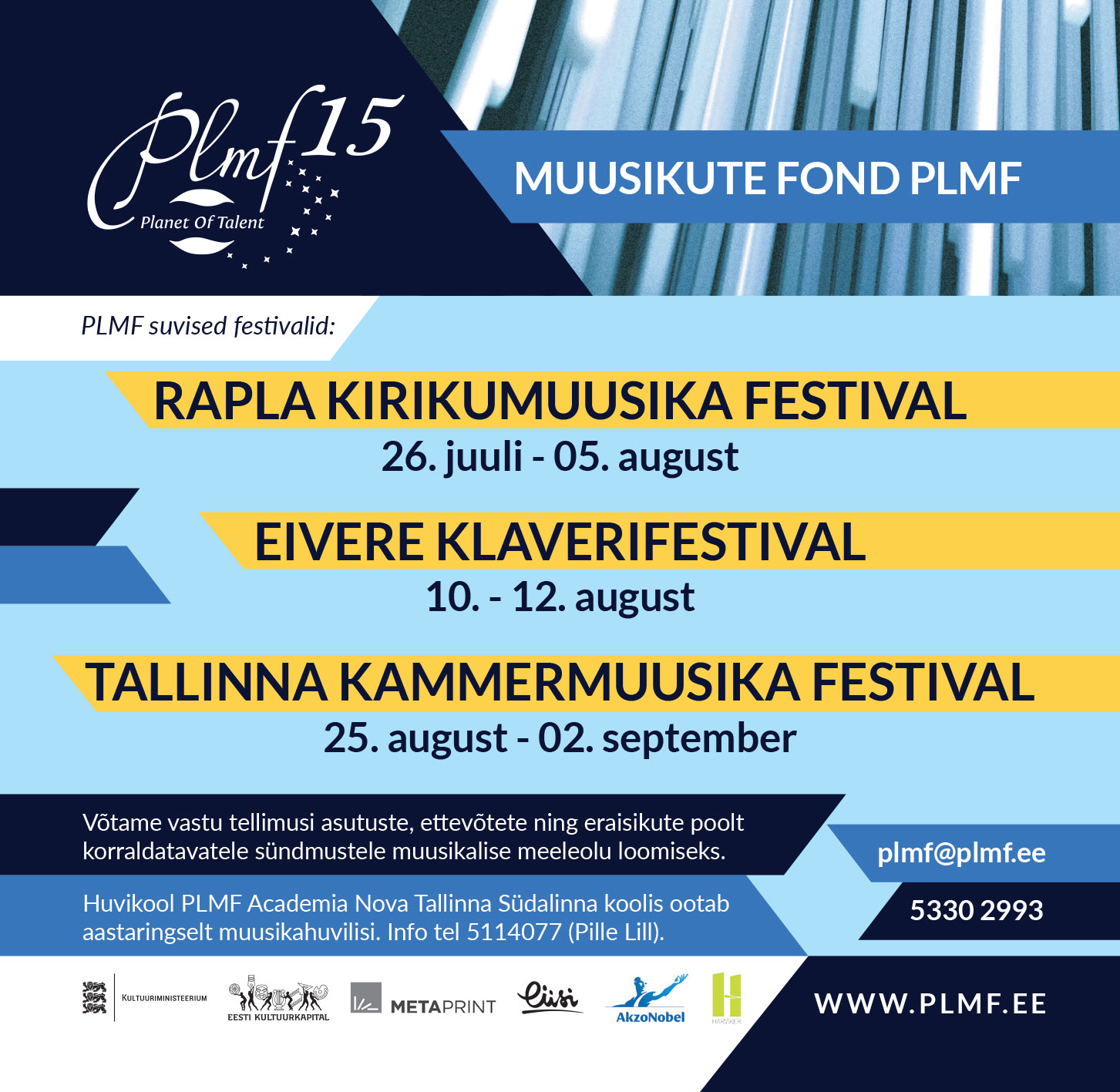 Pille Lille loodud Muusikute fond PLMF avas eelmisel sügisel teetähisena oma huvikooli Academia Nova uksed nii eelkooliealistele kui ka juba küpses eas täiskasvanutele. Professionaalsete muusikute käe all on võimalik lihvida nii oma laulu- kui ka pillimänguoskust. Siinkohal ongi õige aeg mõelda saabuvale sügisele – ootame enda sekka uusi õpilasi.