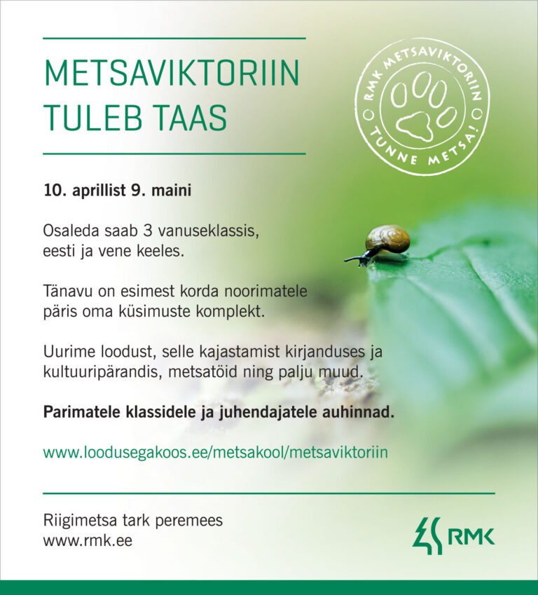 Õpetaja, kui ka sina oled huvitatud sellisel õppepäeval osalemisest või soovid pakkuda gümnaasiumiõpilastele metsateemalisi uurimistöid või arutada metsa- ja loodushariduse teemadel, anna endast märku, kirjutades e-aadressil liina.karrofeldt@rmk.ee.