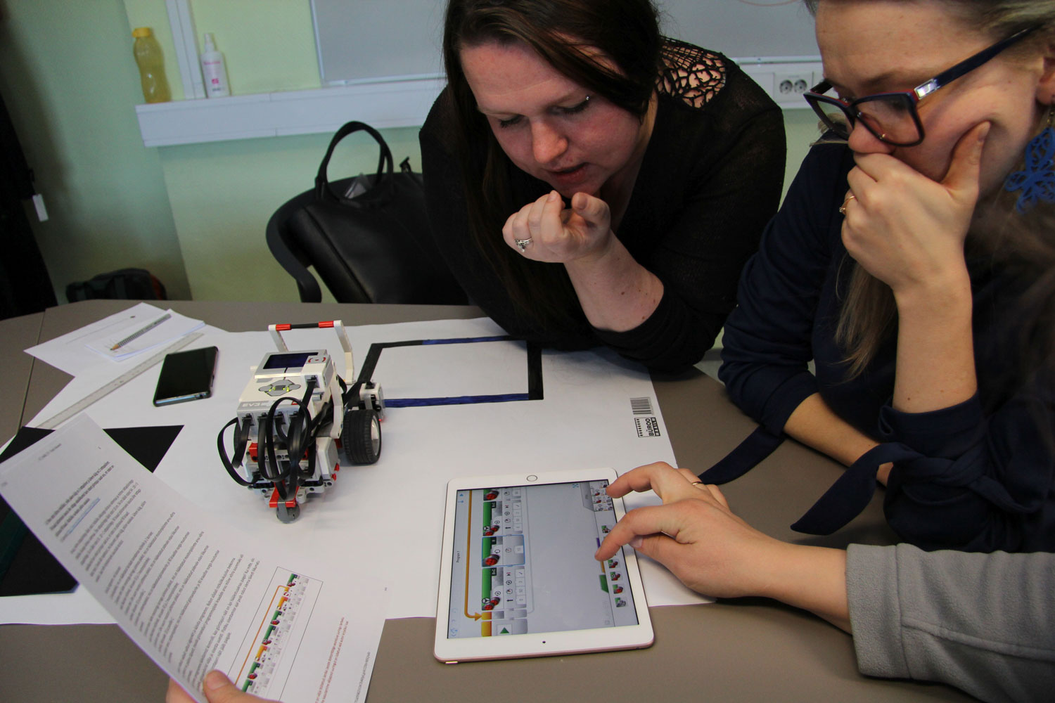HIK-i ideeaida koolituse teises pooles programmeerisid õpetajad ise roboteid (Edison, Lego EV3), nii et need piki ristküliku külgi ja ka mööda looklevat joont liiguksid. Midagi keerulist seal polnud. Robot ühendati tahvelarvutiga ja tahvli ekraanil olid robotile antavad käsud piltidena. Õpetajad leidsid, et programmeerimine on justkui pesumasinale juhiste andmisega, sest pesumasinalgi on iga nupu juures pilt selle kohta, mida see nupp teeb. Roboti puhul oli vaja analoogilised pildid lihtsalt sõrmega õigesse järjekorda lohistada ja stardinuppu vajutada.