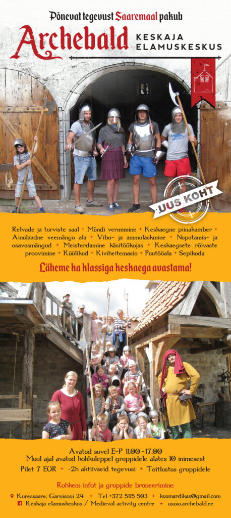 Tule koos pere või klassikaaslaste ja sõpradega Kuressaarde keskaja elamuskeskusesse Archebald (Garnisoni 24), kus ootavad põnevad ja õpetlikud keskaja tegevused!