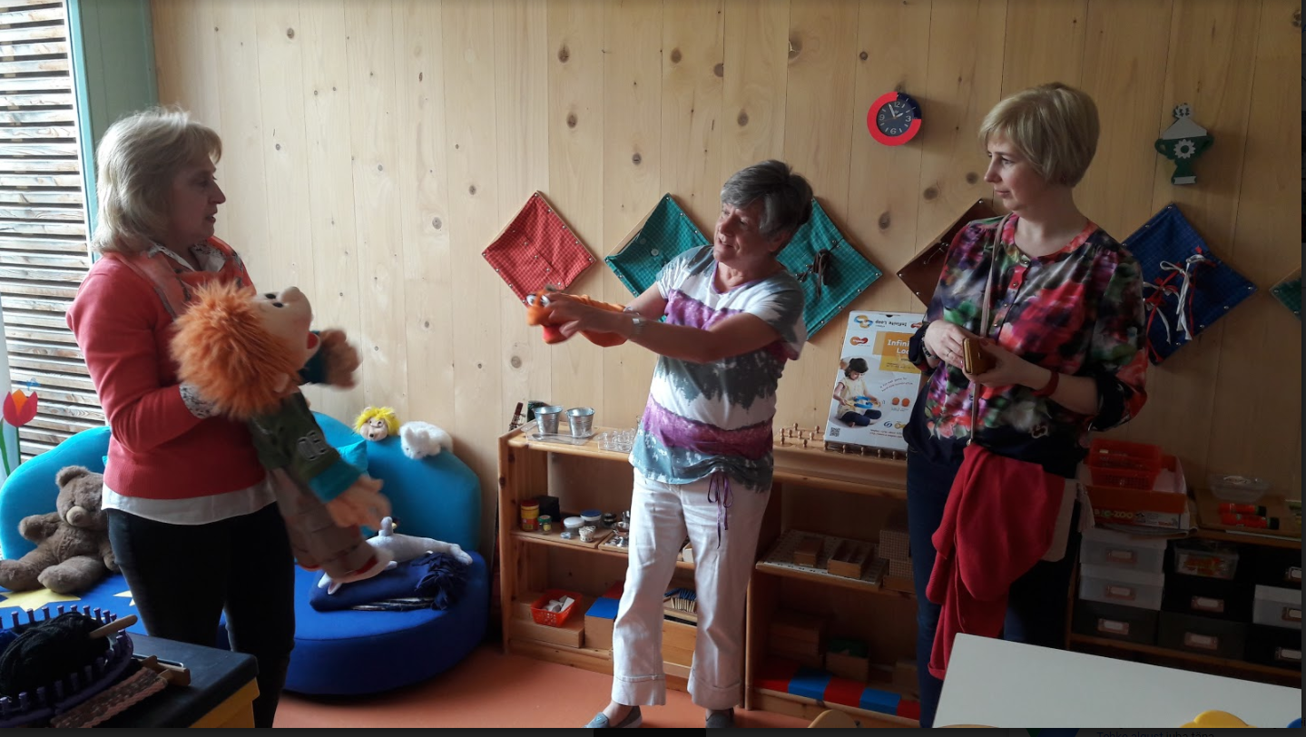 Lahke direktor Petra Röger tutvustas meile asutuse töökorraldust, näitas rühmi ja spetsialistide tööruume ning õueala. Nii nagu Eestiski, viivad rühmas kolm töötajat läbi õppe-ja kasvatustööd kella 7.30–16. Kõik nad tegelevad lastega ning rühmaruume koristavad õhtul koristajad. Pesuteenust osutab lasteaia vastas asuv erivajadustega täiskasvanute keskus.