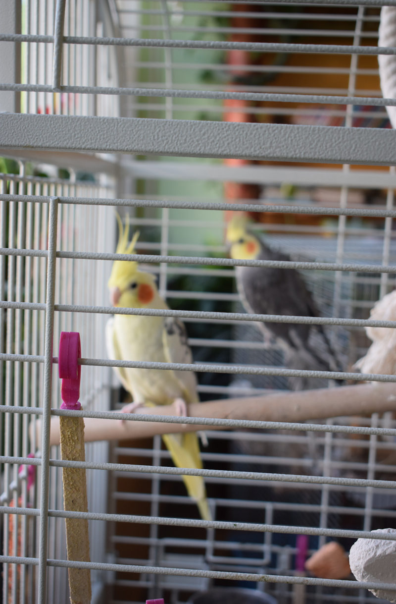 Kui kalad toimetavad rahulikult omaette, siis papagoidele, keda kutsutakse Siuts ja Säuts, meeldib suhelda. Viivika Roostar on tähele pannud, et eriti valjult hakkavad linnud sädistama siis, kui õpetajad saalis koosolekut peavad. „Papagoide puur on kohe saali ukse taga ja nad suudavad kahekesi 30 õpetajast üle „rääkida“. Suure akvaariumi ja papagoide eest kannab hoolt majandustöötaja, tema puhkuse ajal teevad seda teised. Sageli käib ta aga isegi vabadel päevadel ja puhkuse ajal oma hoolealuseid vaatamas.“