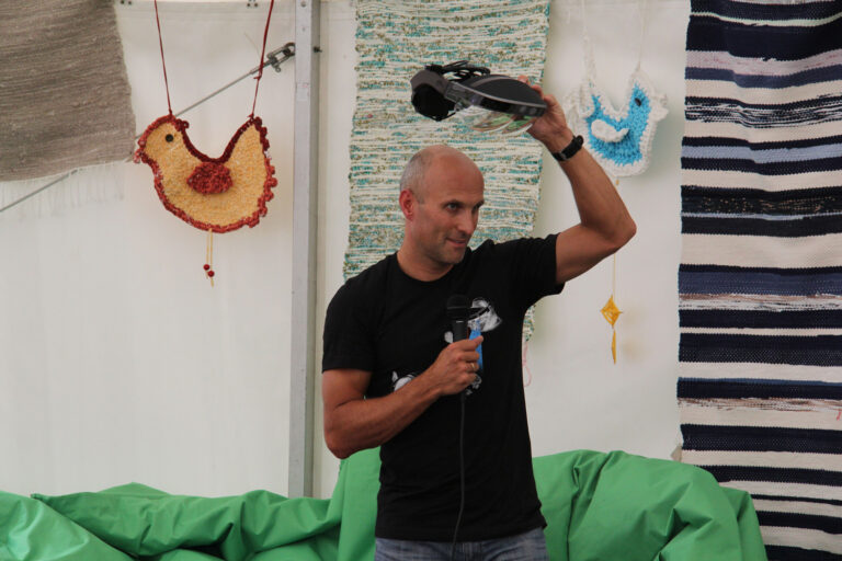 Soome klassiõpetaja Lea Tornberg pani arvamusfestivalil välja võimlemis- ja mänguriistad, mis on tal igapäevaselt klassiruumis. Kui lapsed ei suuda keskenduda, siis nad poksivad, tõmbavad lõuga, ronivad jne. Tänu sellele on tema õpilased varasemast palju rahulikumad. Fotod: Raivo Juurak