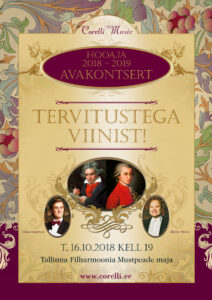 Hooaja avakontserdil 16. oktoobril kell 19 kuuleb Tallinna Mustpeade majas kaunist buketti Viini klassikute muusikapärandist. Corelli Music toob Maarjamaa sügisesse helgeid muusikaelamusi Mozarti ja Beethoveni maailma kullafondi kuuluvast ajatust loomingust. Eesti noorte säravate muusikute põnevad ja uudse lähenemisega esitused loovad tulevikku vaatava silla Euroopa kultuuripärandi ja saja-aastase Eesti ajaloo vahele.