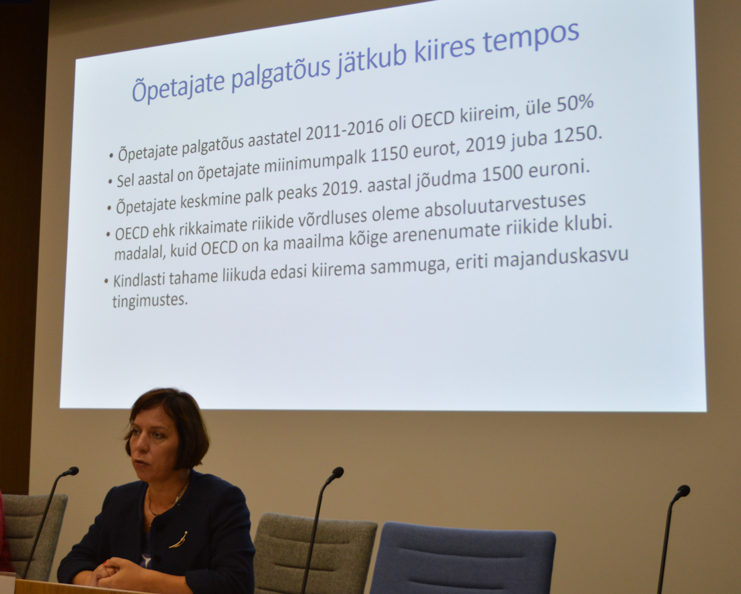 OECD on toonud välja Eesti õpetajate palgatõusu, mis on viimastel aastatel olnud üks OECD riikide kiiremaid, ulatudes üle 50 protsendi. Haridus- ja teadusminister Mailis Reps tunnistas, et absoluutnumbrites on meie õpetajate palgad rikkamate riikidega võrreldes tagasihoidlikud ja just seepärast peab palgatõus jätkuma võimalikult kiirelt. „Õpetajate palk on aluseks sellele, et meil jätkuks ka edaspidi kõigi ainete õpetajaid ja üha tihedamaks muutuvas tööturukonkurentsis otsustaksid noored rohkem kooli kasuks,“ ütles ta OECD kogumiku esitlusel selle nädala teisipäeval.