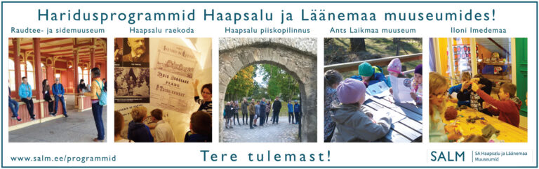 Jõuluseiklus Läänemaal“ on lühike ülevaade jõulupühade tähenduse muutumisest või püsimisest. Anname võimaluse kogeda eri ajastute jõule ning arutleda oma õpilastega selle üle, mida me hoiame olulisel kohal traditsioonidega seoses ja kuidas näitame välja, mis meile oluline on. Haapsalu ja Läänemaa muuseumide ühine programm „Jõuluseiklus Läänemaal“, mille käigus liigume läbi 150 aasta ja nelja muusemi, kestab umbes kaks ja pool tundi. Lähem info ja registreerimine karin.magi@salm.ee.