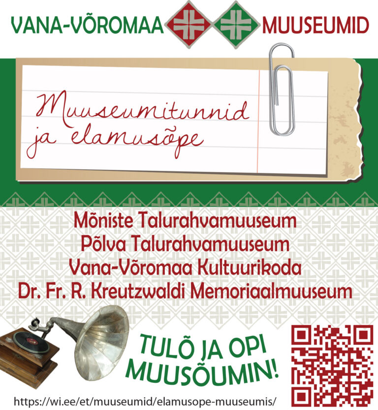 Vana-Võromaa muuseumid pakuvad sel õppeaastal kooliõpilastele põnevaid muuseumitunde ja teemapäevi, kus lapsed saavad koguda tarkusi hoopis teisiti kui koolimajas õppides. Muuseumitunnid on vahelduseks klassis õppimisele, need annavad õppeainetele hoopis uue lähenemisnurga ning tegevuses osalemine muudab teadmise pädevuseks. Muuseumiõppe võimalused ulatuvad käsitööst matemaatikani, kalendritähtpäevade tunnid jagavad teadmisi võrokeste aastatsõõri kommetest.