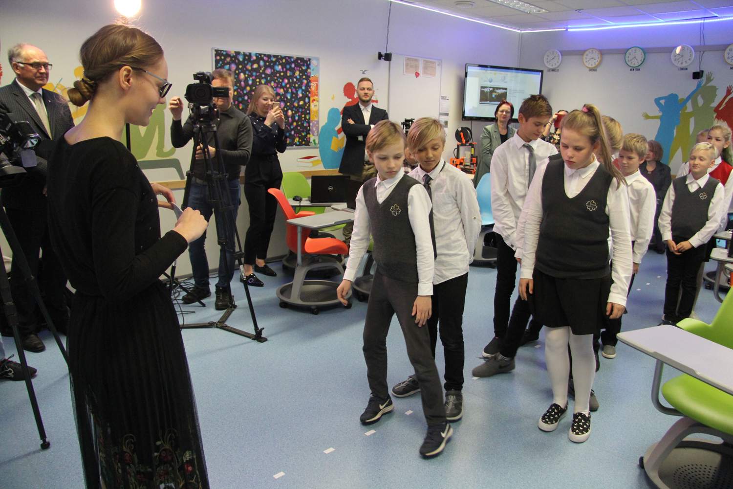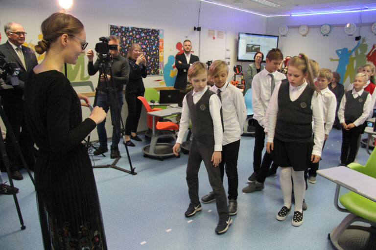 Siis võttis õpetaja Veronika Taimla õpilased keset klassi ritta ja algas liikumismäng. Õpetaja esitas päikesesüsteemi kohta erinevaid väiteid ja õpilased pidid astuma õige väite korral sammu paremale, vale korral vasakule. Nad ikka eksisid ka vahel, sest õpitut alles kinnistati, lisaks läks mõnel vasak-parem pool sassi. Ajakirjanikud aga mõistsid, et võimlemispausid ja liikumismängud on täiesti võimalikud ka digiõpikuga tunnis.