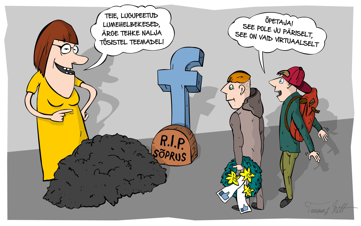 Et „reetlikku“ sõpra karistada, tulid poisid ühel hommikul varem kooli ja korraldasid koolisööklas „sõpruse matused“. Lauale pandi sõbra raamitud pilt koos leinalindiga küünlaga, taustaks mängis Bach. Idee olid poisid saanud ühest YouTube’i videoklipist, kus kolledži noormehed korraldasid oma armunud sõbrale humoorikal moel „poissmehepõlve matused“ ning „kalli kadunukese“ auks ja mälestuseks peeti lustakaid kõnesid.