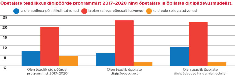 Nii väita ei saa. Ida-Virumaa õpetajad on teadlikud digipöörde programmist 2017–2020, õpilaste ja õpetajate digipädevuste hindamismudelist ning on nendega põgusalt tutvunud. Küsitlusele vastanud 31 õpetajast väitsid kõik, et kasutavad oma igapäevatöös infotehnoloogiat, et otsida teemakohast infot, palju kasutatakse ka kolleegide loodud e-õppematerjale. Endale ise digitaalsete õppematerjalide väljatöötamine nõuab aega ja eeldab põhjalikke digiteadmisi. Selliseid õpetajaid on, kuid kahjuks vähe. Digivahendite kasutamine eesti keele kui teise keele õppes jääb Ida-Virumaa uuritud kolmes koolis kokkuvõttes tagasihoidlikuks.