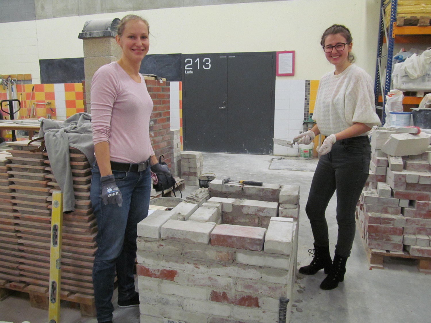 „Sõbranna õpib siin, tulin tema kutsel,“ lausus Kersti Viiol (paremal) kaminat ladudes. Vasakul pottsepaks õppiv Elisa Anni. Fotod: Annika Poldre