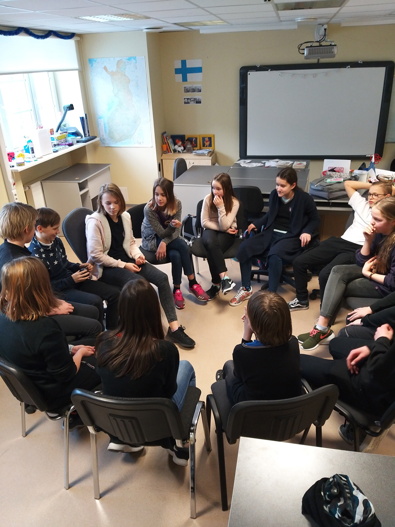 Tallinna ühisgümnaasiumi 6. klassi õpilased õpivad esimest aastat soome keelt. Foto: Karola Velberg
