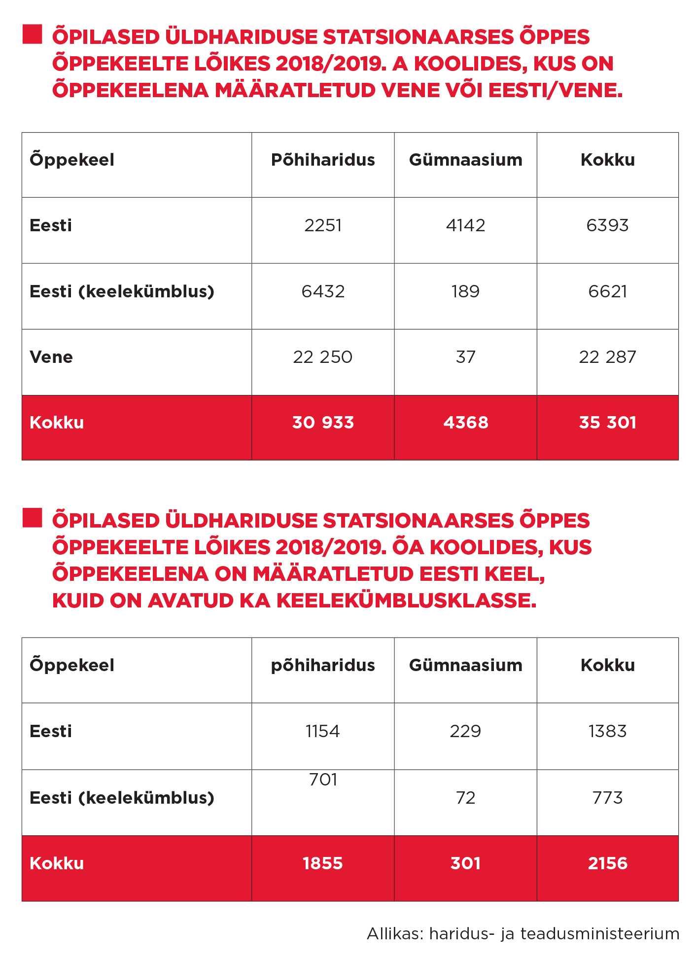 On rõõmustav, et üha enam muu emakeelega lapsi õpib eestikeelses koolis. Põhihariduse statsionaarses õppes õpib 11% muu emakeelega lastest eesti keeles või osaleb keelekümblusklassis (20%). Samas kulub praeguse tempo juures veel palju aastaid, kuni kõik Eesti lapsed omandavad eesti keele.
