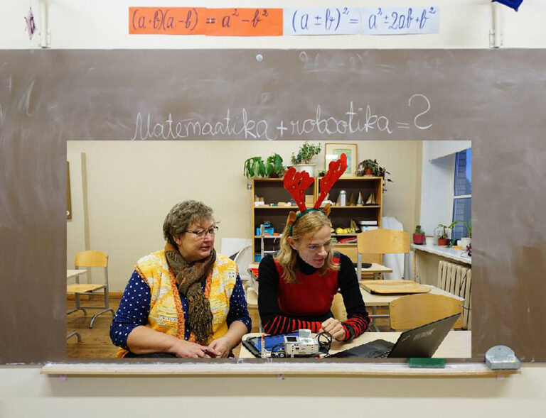 Kairi Mustjatse ja Janika Leoste 2017. aastal robomatemaatika arenguplaane arutamas. Fotod: erakogu