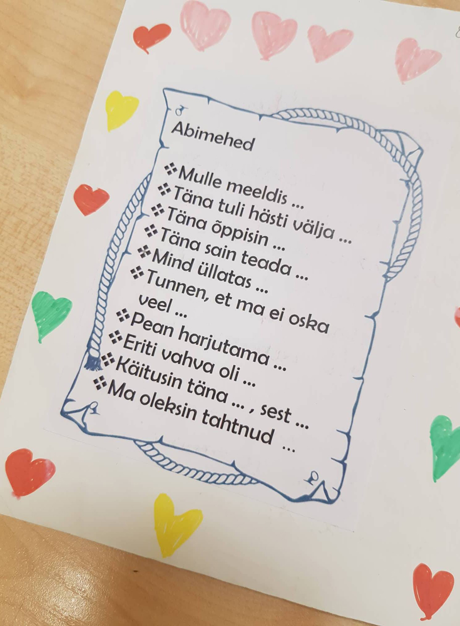 Õpetaja Helen ütleb, et on tahtnud oma õpilastele tutvustada võimalikult paljut, et nad julgeksid ja tahaksid mitmesuguseid asju proovida ning oleksid teiste suhtes sallivad ja avatud. „Algusest peale on olnud minu jaoks tähtis, et nad saaksid omavahel hästi läbi ning neist kasvaksid abivalmis ja head inimesed. Tekitan koolis teadlikult võimalusi, kus tuleb üksteise kohta öelda midagi head. Ja muidugi peaksid nad meeles pidama, et iga päev on seiklus. Kuigi me pole kokku leppinud, on sellest kuidagi iseenesest kujunenud meie klassi juhtlause.“