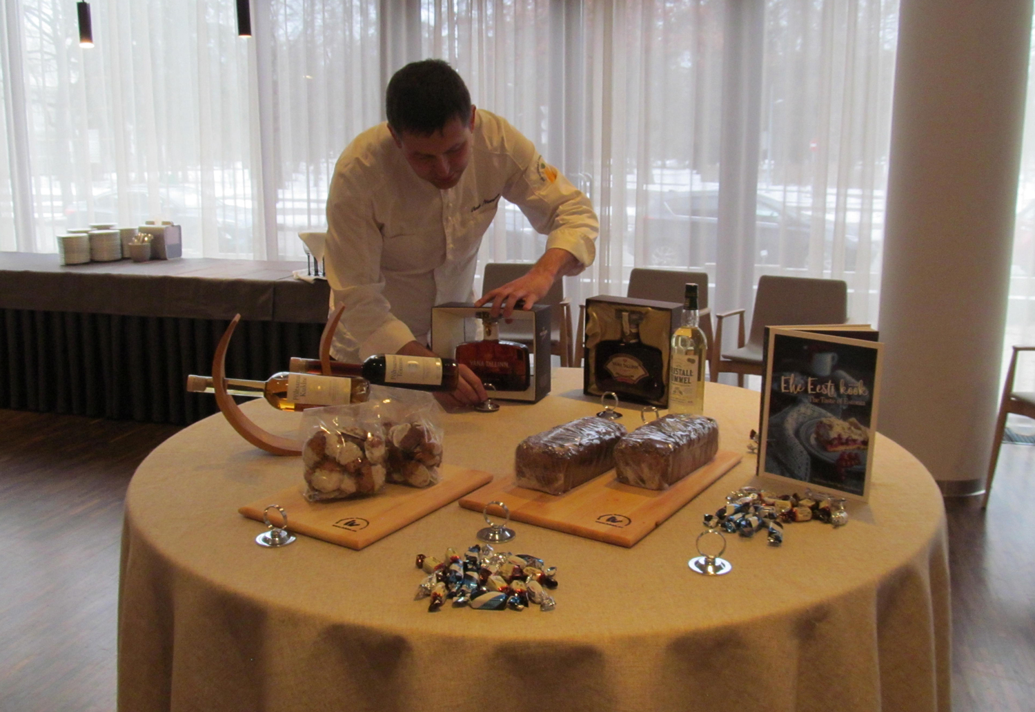 Iga võistkond katab ka oma rahvusliku laua. Seda katsetab Urmas Murumäe, seades lauale Vana Tallinna ja kristallkümmeli, rukkileiva ja kaeraküpsised ning Kalevi kommid.