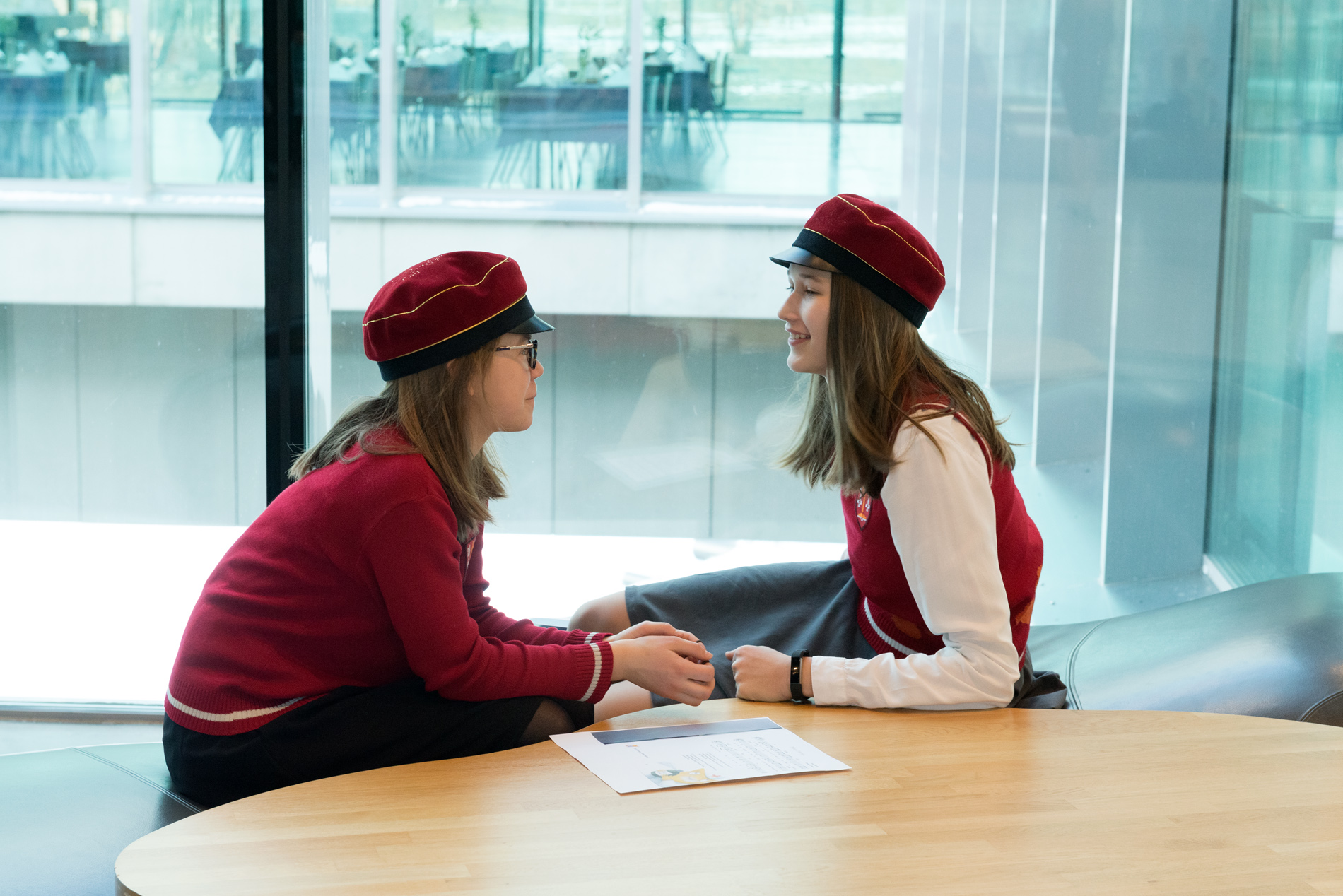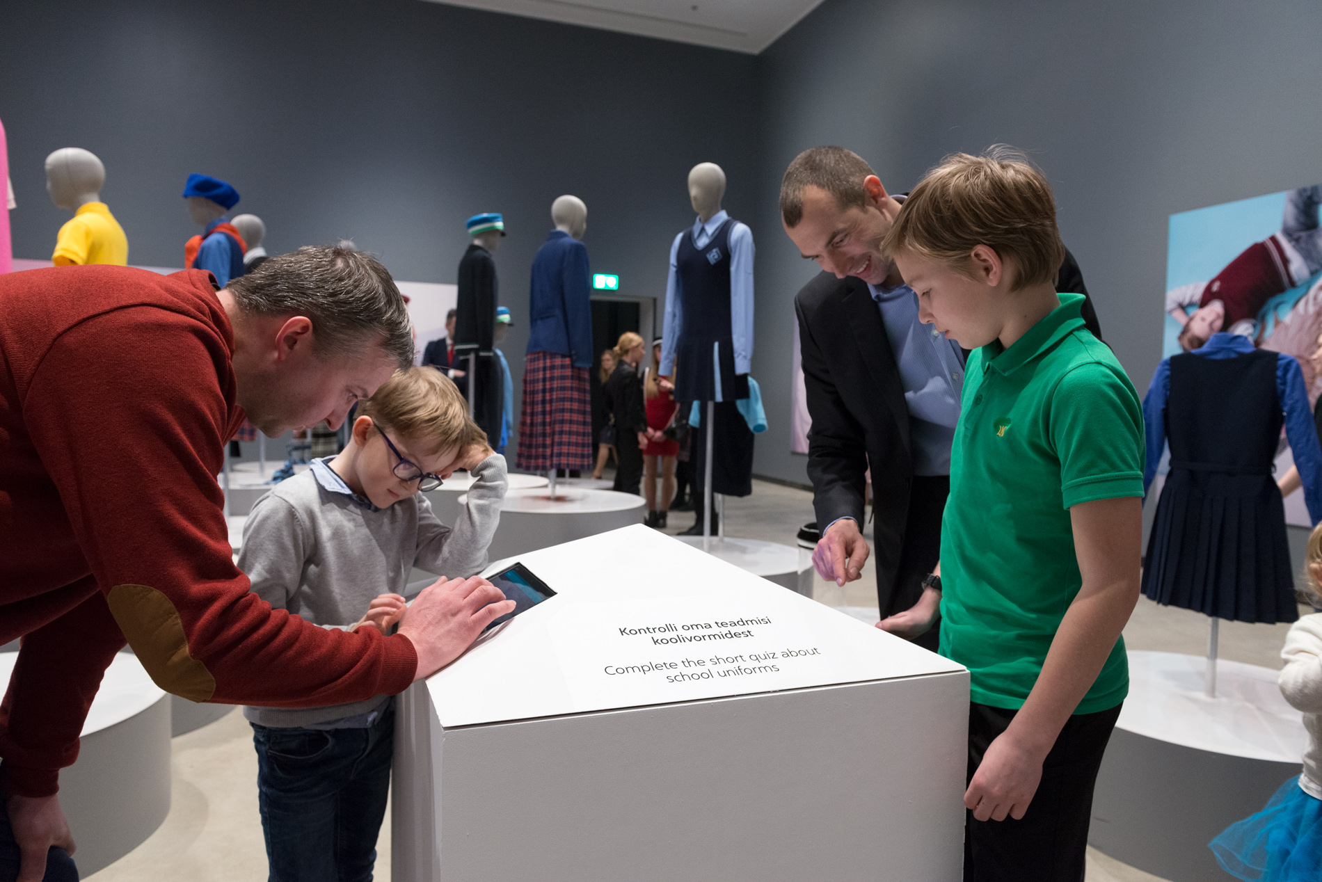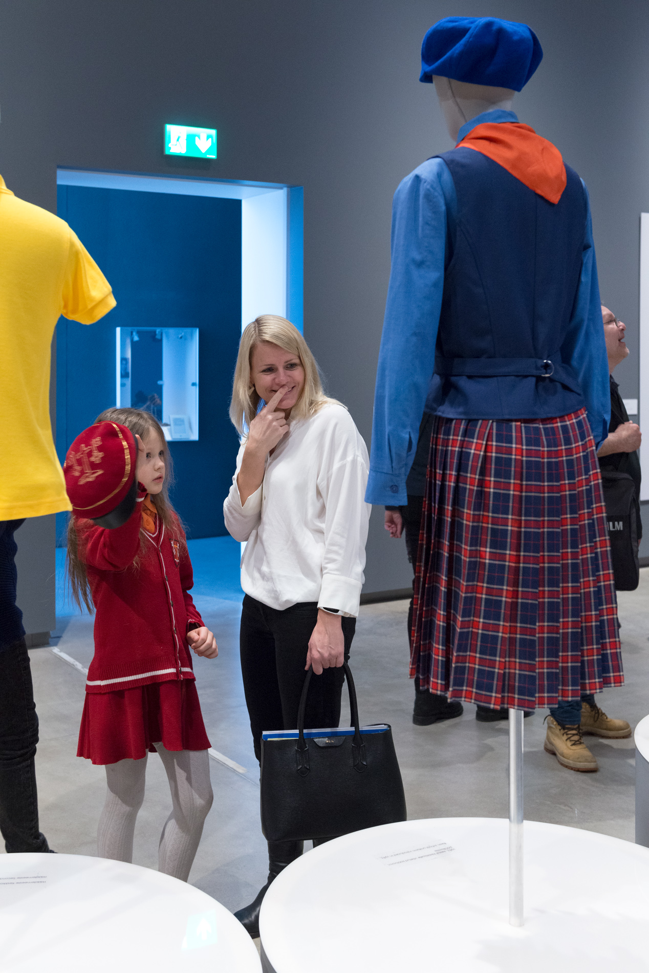 Näitusel olevatest vormidest tundub nii Elisale kui ka Marjaanale kõige ägedam Tartu luterliku Peetri kooli vorm. Meeldib julge värvivalik – punane ja kuldne joon – ja seegi, et embleemid ja sümboolika on lugupidavalt välja toodud.