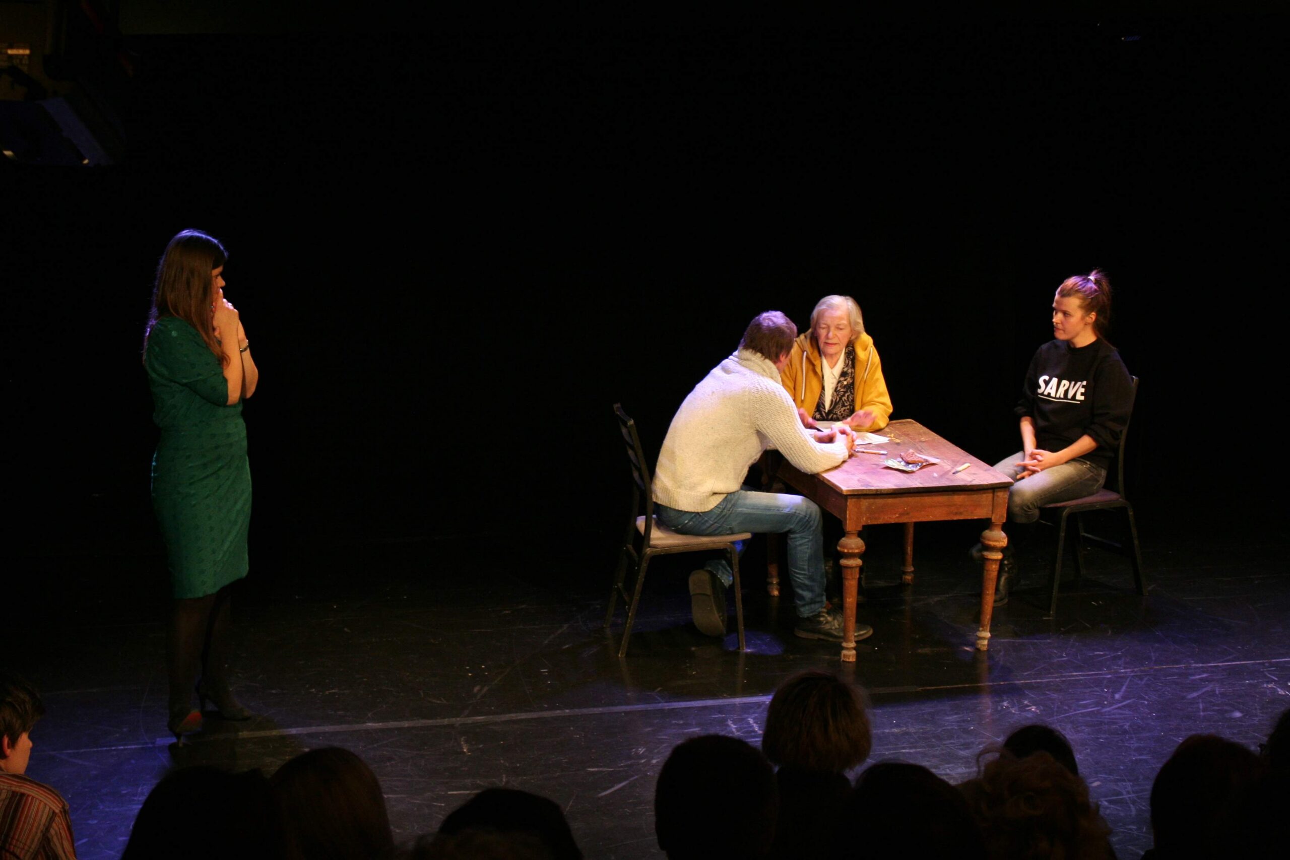 Kui näitlejad olid loo ette kandnud, palus jokker valida vaatajatel välja tegelane, kes neis kõige enam kaastunnet äratas. Ülekaalukalt valis publik selleks noormehe, kellel tuli olla justkui kahe tule vahel. Lugu mängiti korduvalt uuesti läbi ning vastavalt foorumteatri reeglitele said nüüd vaatajad loosse sekkuda: iga hetk võis keegi saalist lavaloo peatada ja asuda ise noormehe rolli, et tuua asjade käiku pööre, mis viiks parema lahenduseni.