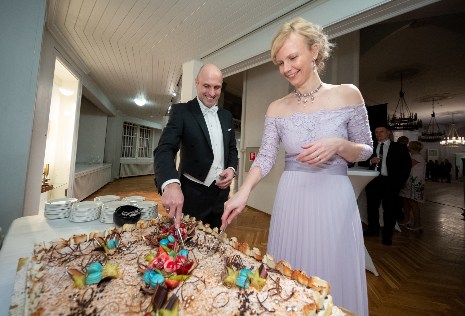 Tort, mille Pedagogicumi juhataja Margus Pedaste ja haridusteaduste instituudi juhataja Äli Leijen koos lahti lõikasid, oli suur ja värviline ning meeleoluka peo vääriline. Fotod: Andres Tennus