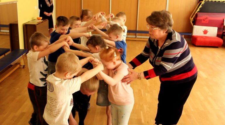Õpetaja Irina Ladõgina õpetab lastele kõiki laule koos mänguga. Kui lauldakse sillast, siis moodustatakse kätega sillakaar, mille alt lapsed üksteise järel läbi jooksevad, ja lõbu on laialt. Kui lauldakse lainetest, siis lehvitatakse siidilinte nagu laineid. Muusikatunni lõpus harjutas õpetaja Ladõgina lastega ka noodist rütmi laulmist silpidega „taa“ ja „ti-ti“. Et asi põnevam oleks, said lapsed seda rütmi mitmesugustel löökpillidel kaasa lüüa, nii et tekkis isegi orkestri tunne. Siis aga teatas õpetaja, et selles õpitud rütmis peidab ennast üks laul – „Василёк“ ehk „Rukkilill“. Ja siis lauldi seda laulu.