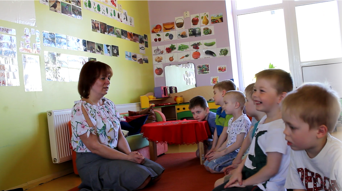 Õpetaja Elena Varavina tegevus algab kohe mänguliselt. Ta võtab välja laste suure lemmiku, rühma maskoti Jura ja lapsed saavad talle üksteise järel vene keeles tere öelda, küsida, kuidas tal läheb jne. Ühtlasi teevad tüdrukud Jurale pai ja kallistavad teda, poisid aga sügavad maskotil pead ja patsutavad talle õlale. Nii harjutavad lapsed vene keelt maskotiga suheldes.