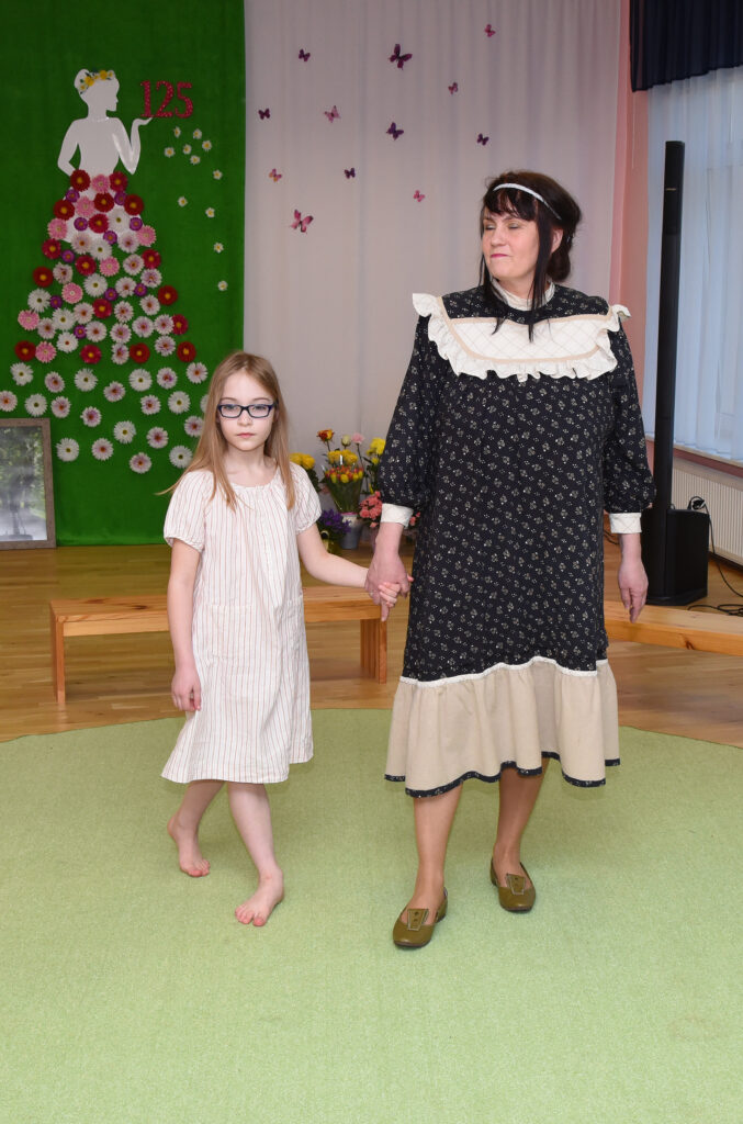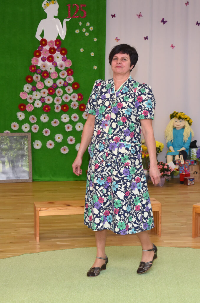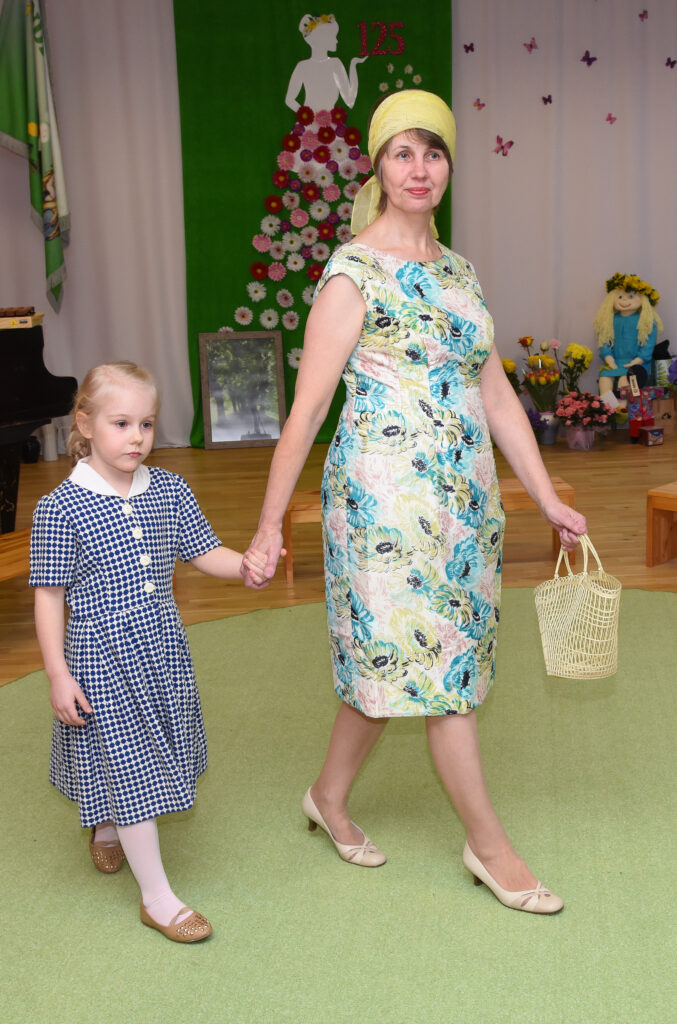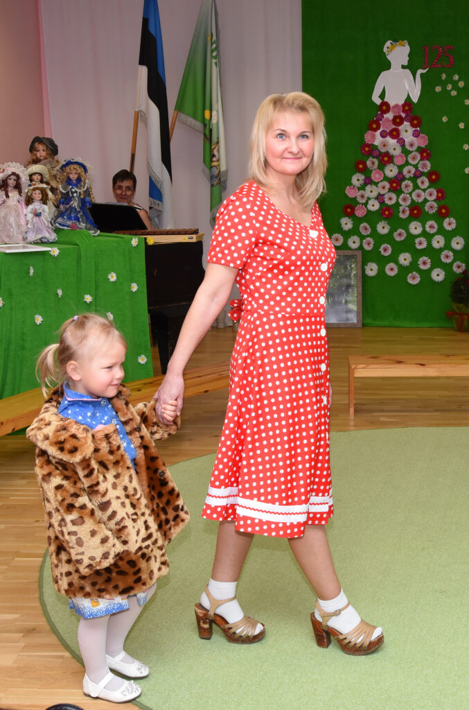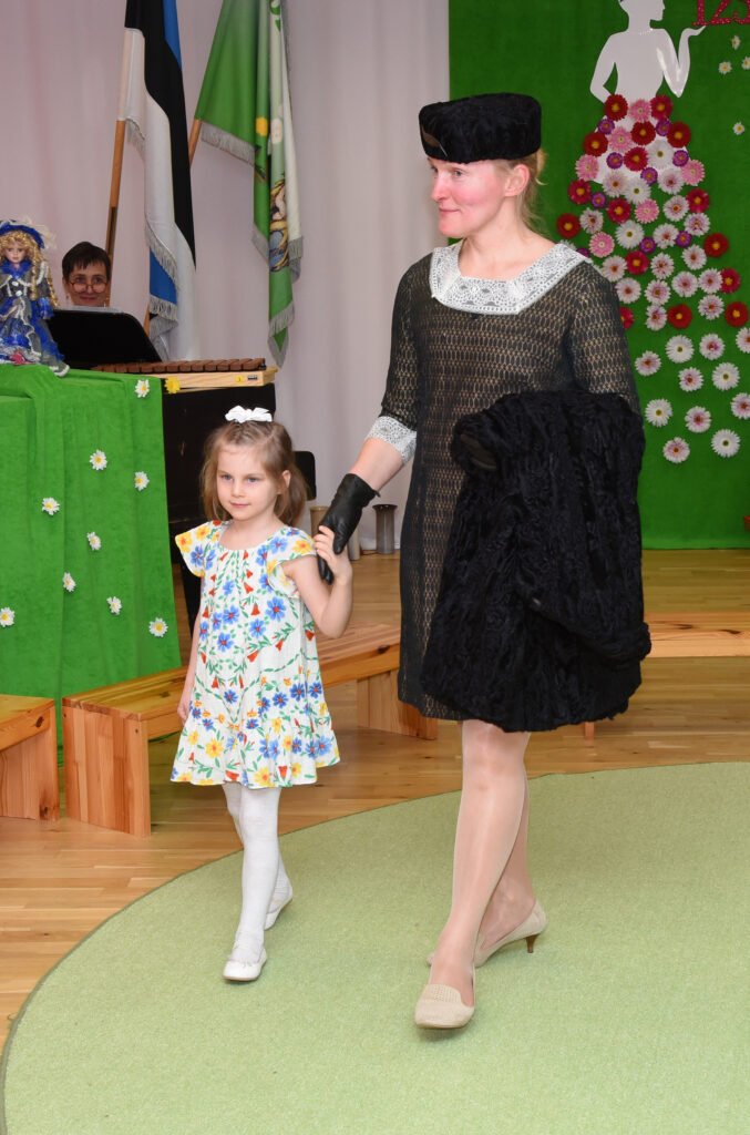 „Meie lasteaial on pikk ja väärikas ajalugu, millest on palju räägitud ja kirjutatud ka kaks raamatut. Kuna oleme ajalooliselt olnud tekstiilivabriku lasteaed ja lasteaiaõpetajad on naised, otsustasime sel korral vaadata neid 125 aastat läbi moesilma,“ selgitab lasteaia direktor Kairi Rinaldo. „Püüdsime kõrvutada lasteaia ja moe ajalugu ning meenutada, milliseid rõivaid naised eri aastakümnetel kandsid. Mannekeenideks olid meie lasteaia töötajad ja lapsed ning kommentaare jagasin mina. Ülevaate andsime aastatest 1890–1990, tänapäeva me välja jõudnud.“