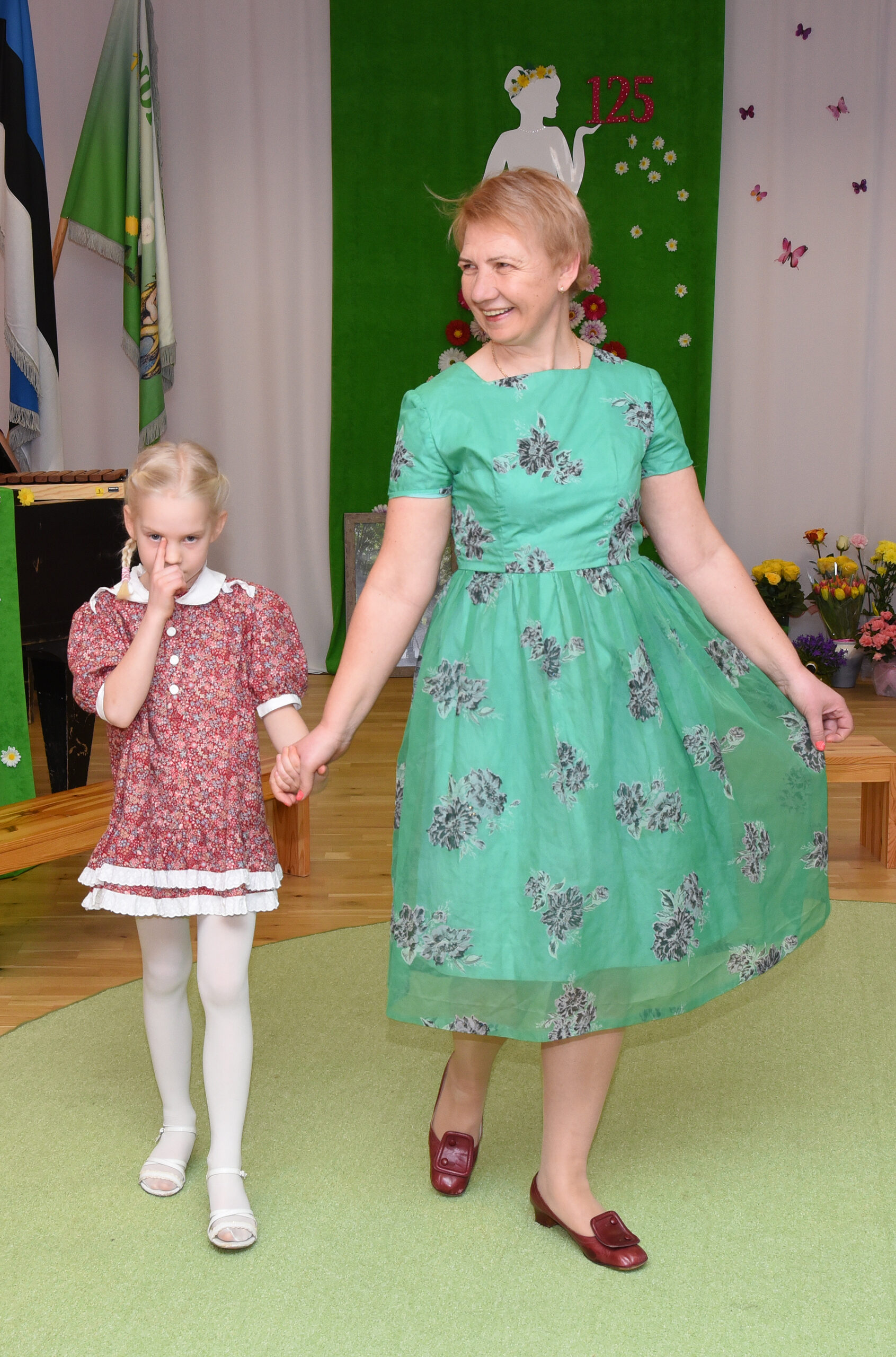 „Meie lasteaial on pikk ja väärikas ajalugu, millest on palju räägitud ja kirjutatud ka kaks raamatut. Kuna oleme ajalooliselt olnud tekstiilivabriku lasteaed ja lasteaiaõpetajad on naised, otsustasime sel korral vaadata neid 125 aastat läbi moesilma,“ selgitab lasteaia direktor Kairi Rinaldo. „Püüdsime kõrvutada lasteaia ja moe ajalugu ning meenutada, milliseid rõivaid naised eri aastakümnetel kandsid. Mannekeenideks olid meie lasteaia töötajad ja lapsed ning kommentaare jagasin mina. Ülevaate andsime aastatest 1890–1990, tänapäeva me välja jõudnud.“