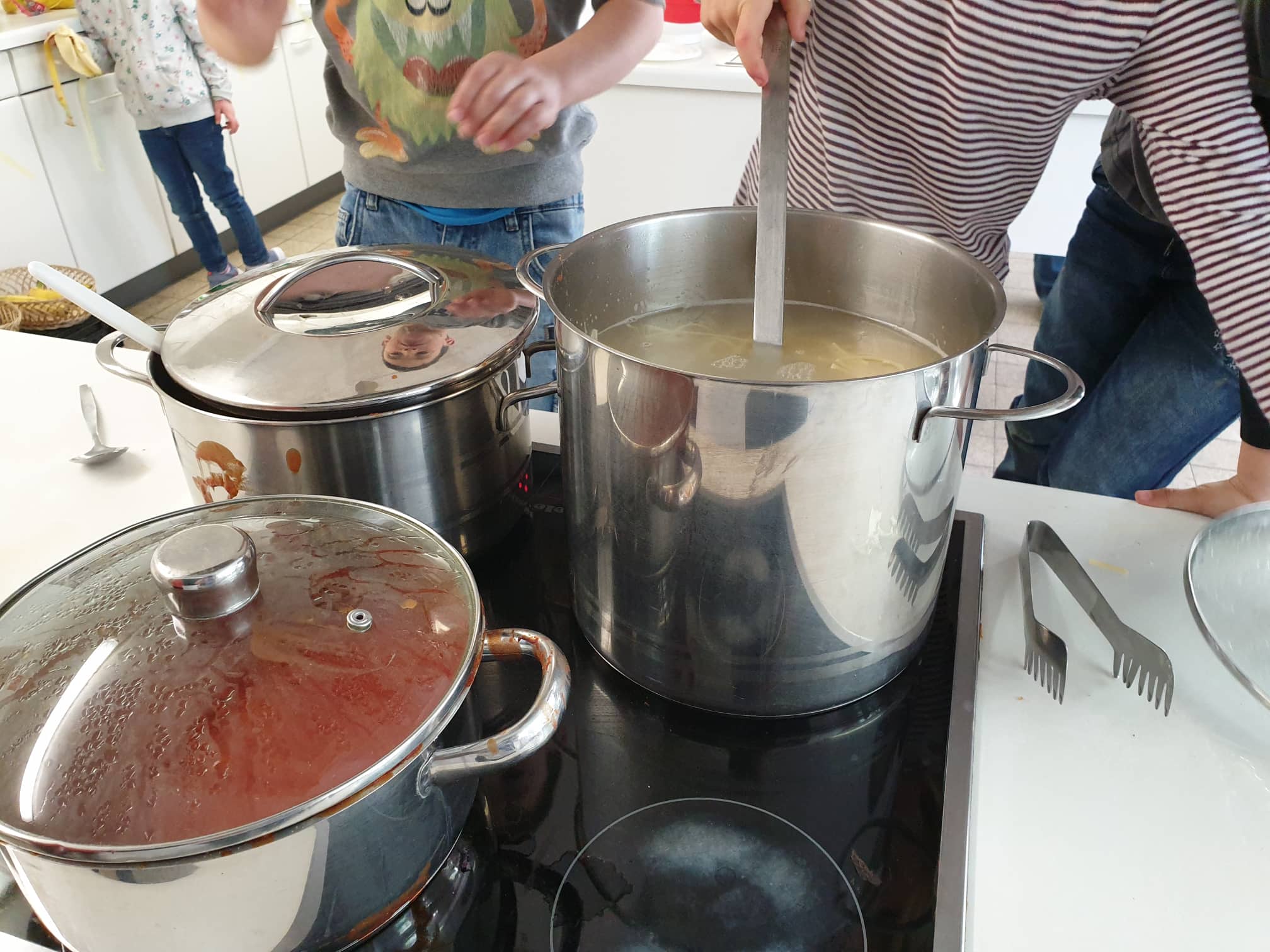 Kokkamise õpitoas valitses meie arvates küll tõeline kaos – lapsed tühjendasid pakitäie spagette suurde potti külma vette, hiljem seisid kuuma pliidi ääres ja segasid suure kulbiga. Keegi neid sealjuures ei õpetanud ega näinud nende tegevuses mingit ohtu. Kasvatajad olid seda meelt, et lastel tuleb lasta ise proovida, ja mudilased olidki täie hingega asja juures. Kõik laabus õnneks hästi ja nii uskumatu, kui see ei tundu, saidki spagetid valmis ja keegi näljaseks ei jäänud.