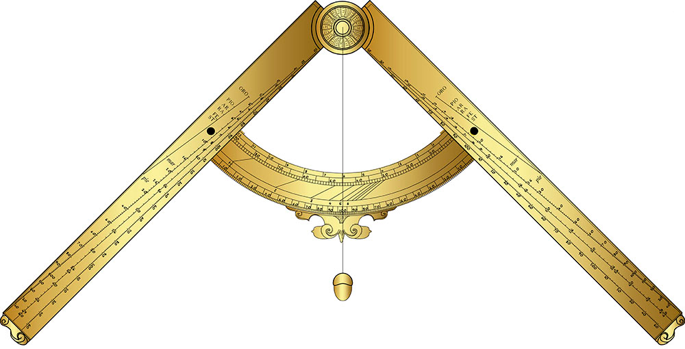 Galileo Galilei geomeetriline ja militaarne kompass. Galileo Galilei leiutas geomeetrilis-militaarse kompassi aastal 1597 suurtükikuulide lennukauguse arvestamiseks. Kompass koosnes kahest kokku köidetud joonlauast ning tema kasutusviis meenutab lükati oma. Tal on skaalad, mille abil saab teha aritmeetilisi, geomeetrilisi ja stereomeetrilisi arvutusi jpm. See kompass ei olnud väga täpne, kuid andis selle eest kiiresti enam-vähem õigeid vastuseid.