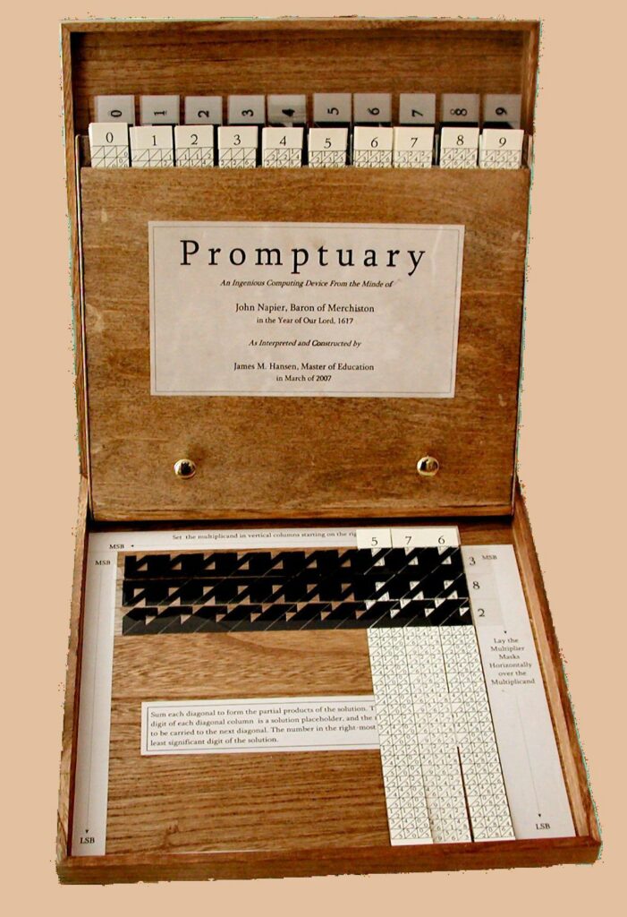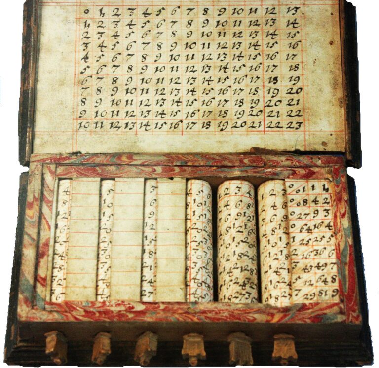 John Napieri arvutuspulgad. Šoti matemaatik John Napier (1550–1617) avaldas 1617. aastal raamatu „Rabdoloogia“, kus tutvustas arvutuspulkade ja arvutusribade abil korrutamist, jagamist, aga ka ruut- ja kuupjuure võtmist. Napieri arvutuspulkadel olid iga külje peal numbrid, tehteid tehti pulki pöörates. Ta pakkus välja ka arvutuskaarte. Saja kaardi peale olid paigutatud kindla korra järgi numbrid, 200 kaardil olid kindlatel kohtadel augud, kust nägi vastuseid.