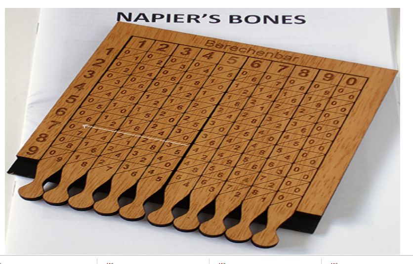 John Napieri arvutuspulgad. Šoti matemaatik John Napier (1550–1617) avaldas 1617. aastal raamatu „Rabdoloogia“, kus tutvustas arvutuspulkade ja arvutusribade abil korrutamist, jagamist, aga ka ruut- ja kuupjuure võtmist. Napieri arvutuspulkadel olid iga külje peal numbrid, tehteid tehti pulki pöörates. Ta pakkus välja ka arvutuskaarte. Saja kaardi peale olid paigutatud kindla korra järgi numbrid, 200 kaardil olid kindlatel kohtadel augud, kust nägi vastuseid.