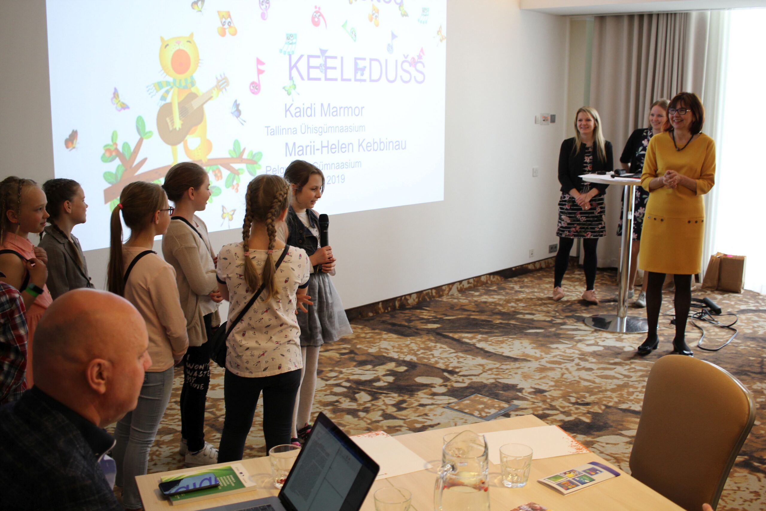 Jüri gümnaasiumi õppedirektor Anne Kloren rääkis, kuidas neil õpitakse teises kooliastmes inimese- ja ühiskonnaõpetust osaliselt inglise keeles. Kui õppeainet on nädalas kaks tundi, on üks nendest tundidest eesti ja teine inglise keeles. Kui õppeainet on nädalas üks tund, on selle teemad vaheldumisi eesti ja inglise keeles.