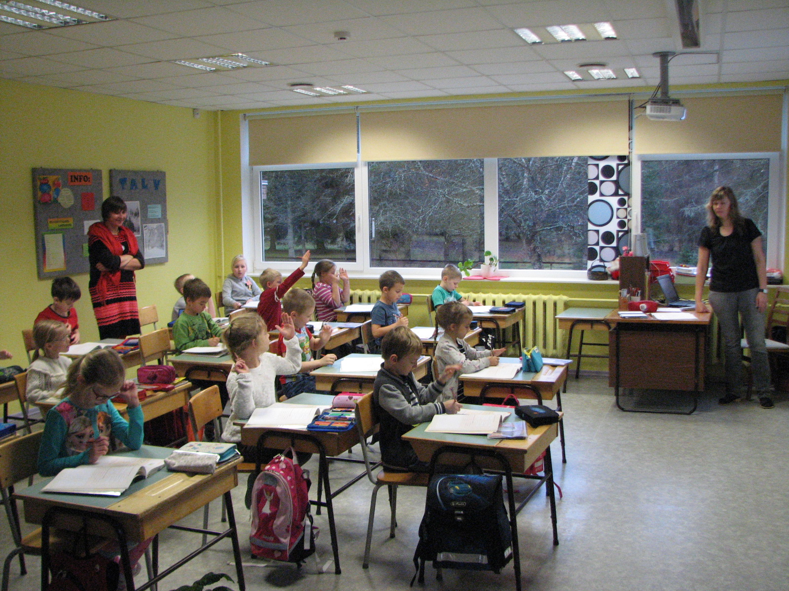 Kasvatus eeldab ka õpetajate enda ühiseid arutelusid. Fotol annavad Võru Kreutzwaldi kooli klassiõpetaja Aigi Laine ja Kilingi-Nõmme gümnaasiumi õpetaja Terje Pahk üheskoos esimeses klassis tundi. Fotod: erakogu