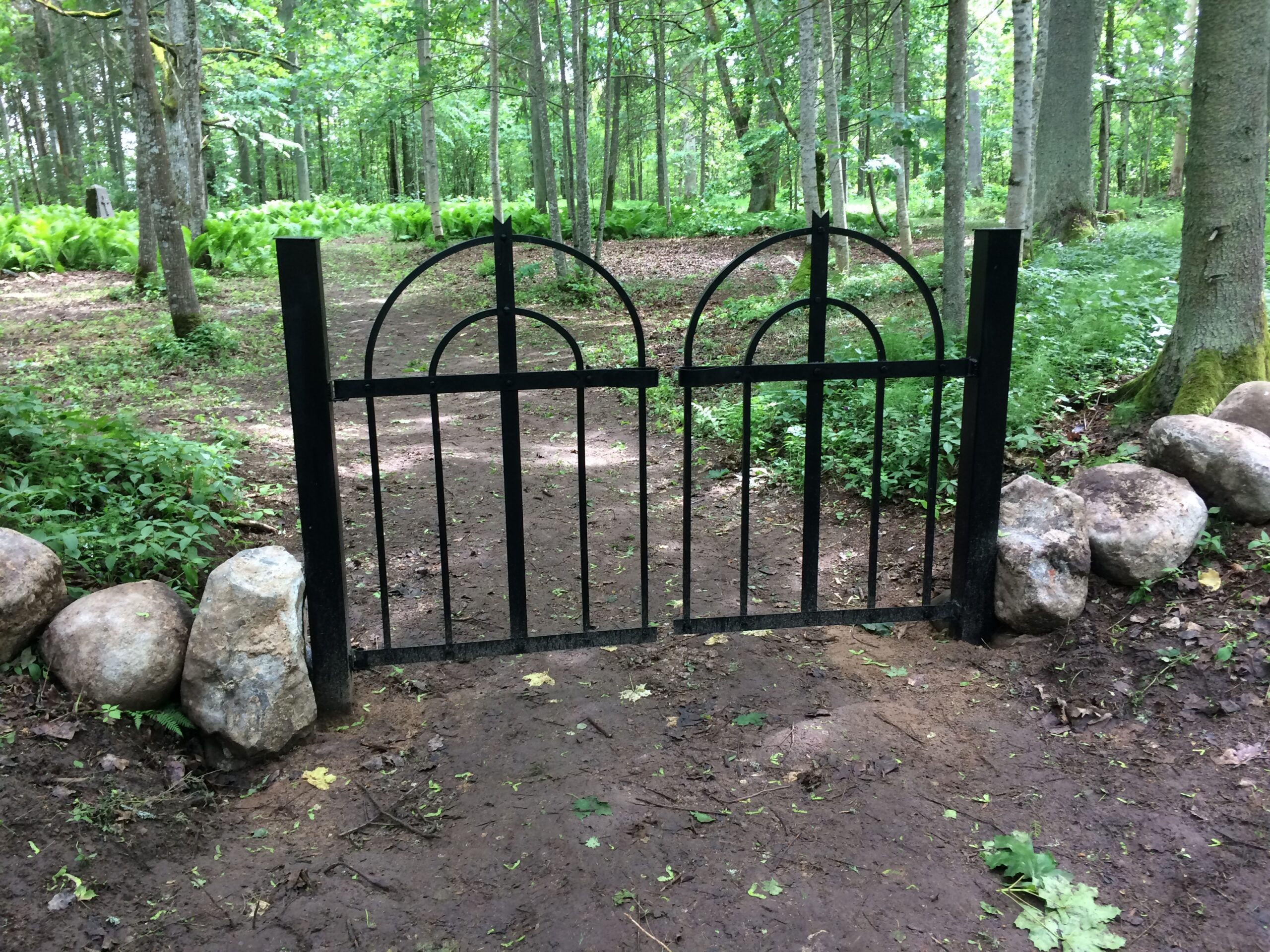 Heimtali põhikooli 8. klassi õpilased Karl Kask ja Simo Verrev tegid loovtööna kooli sepikojas ajaloolisele von Siversite perekonnakalmistule sepisväravad. Foto: Elle Lepik