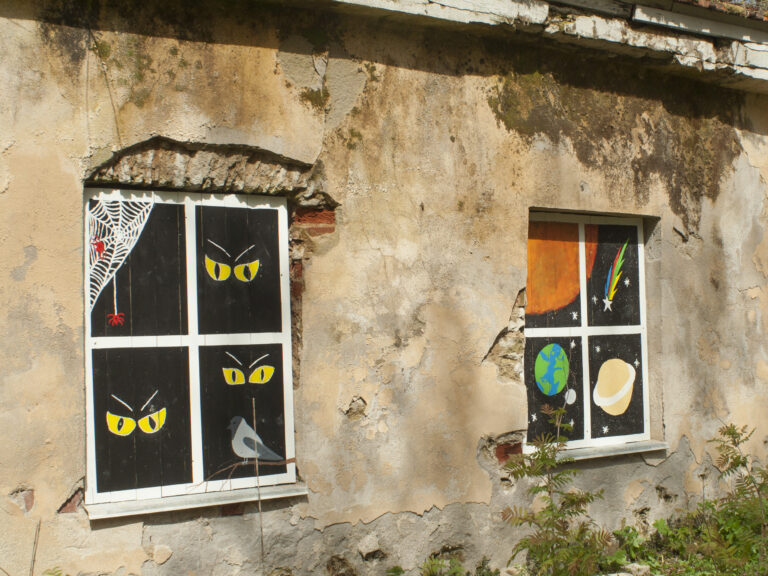 Kolga kooli pärandivaderid valmistasid tühjalt seisvale Kolga mõisa aednikumajale kaitseks pilkupüüdvad aknakatted. Foto: Elle Lepik