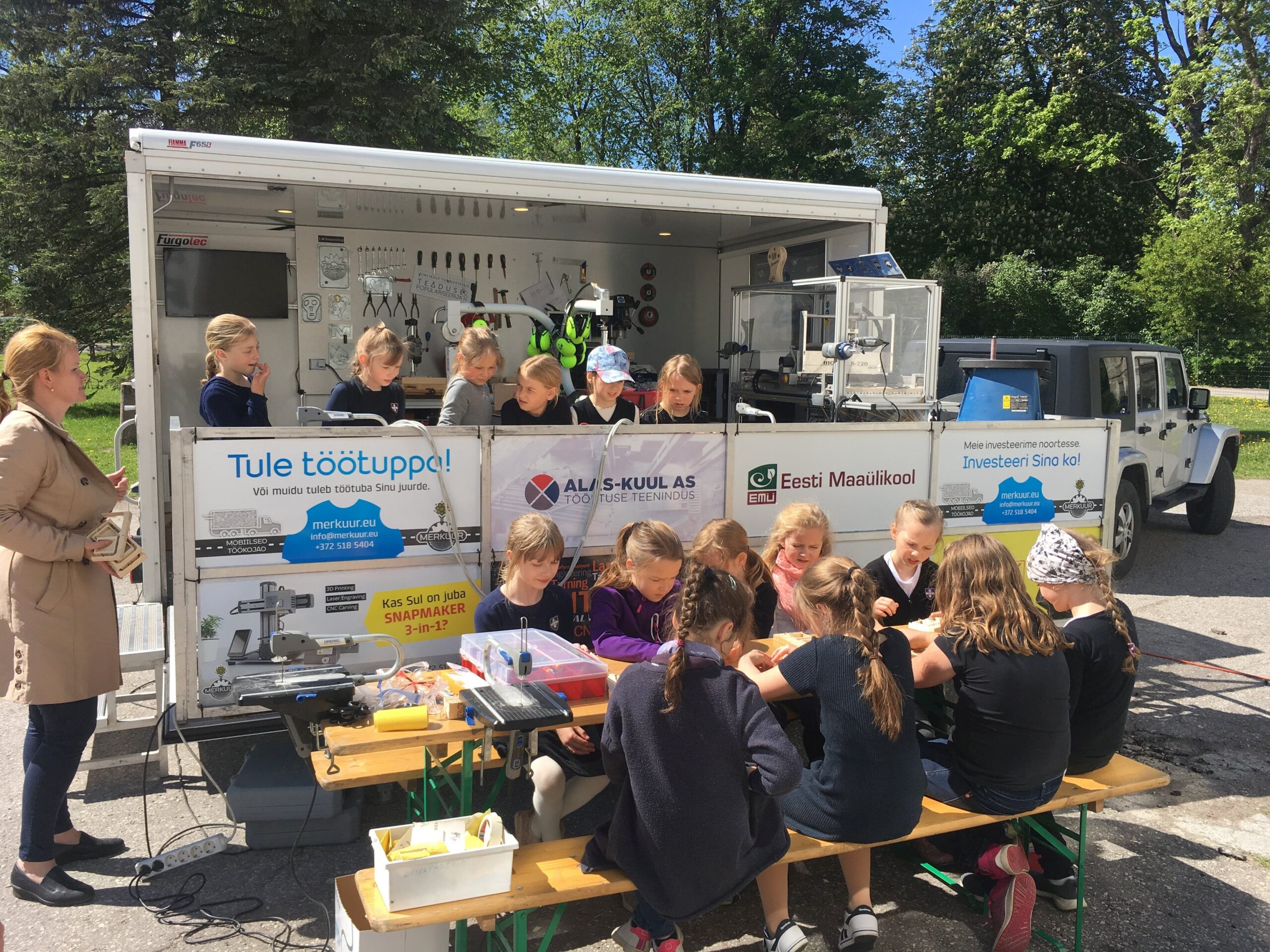Mobiilne puidu- ja metallitöö labori saab tellida noortelaagritesse, vabaõhuüritustele, aga ka oma kooli tehnoloogiatundi.