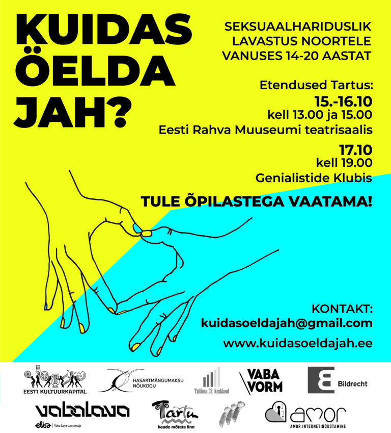 Eelmisel aastal Vaba Lava teatrikeskuses etendunud seksuaalhariduslikku lavastust „Kuidas öelda jah?“ on nüüdseks Tallinnas üksjagu kordi mängitud. Taas saab lavastust näha oktoobris Tartus. Kuidas on lavastus trupi liikmete enda mõtlemist muutnud ja millised on muljed publikuga kohtumisest?