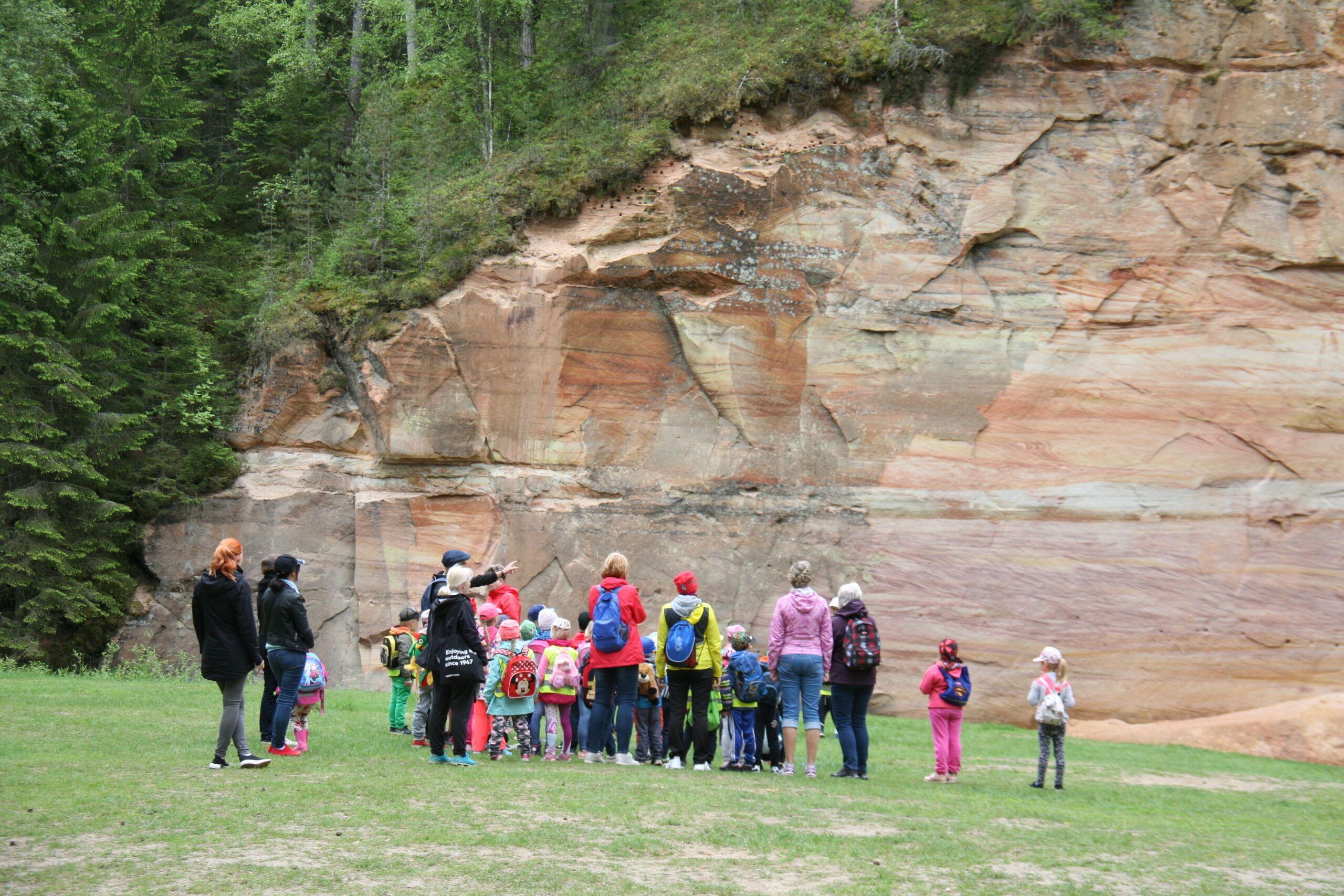 Lasteaias on olulisel kohal õppekäigud, matkad ja väljasõidud, mida ei tehta lihtsalt lusti pärast, vaid eesmärgiga, et laps õpiks, tema silmaring laieneks ning ta oskaks seoseid luua. Põlva Lepatriinu lasteaia lapsed sel kevadel koos õpetajatega Põlvamaal Taevaskojas matkal matkajuhti kuulamas. Foto: Ene Tigas