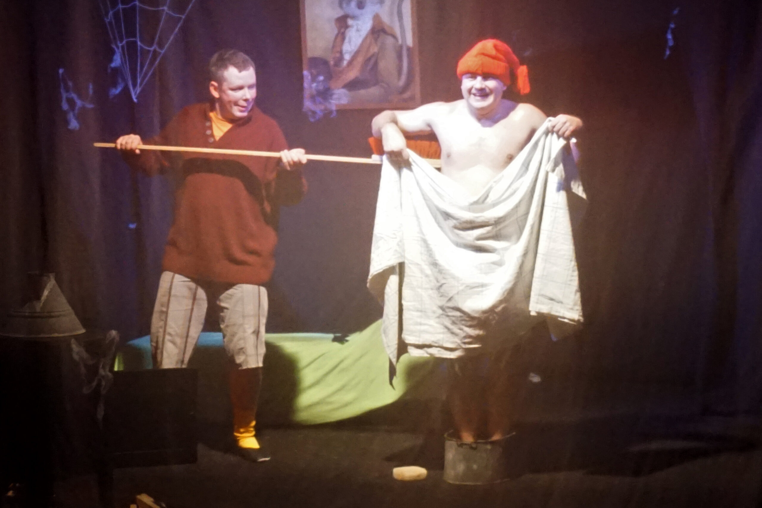 Stseen lavastusest „Pöialpoiss Nils Karlsson“. Bertil – Mart Toome, Nisse – Kristo Toots. Foto: Triin Simson