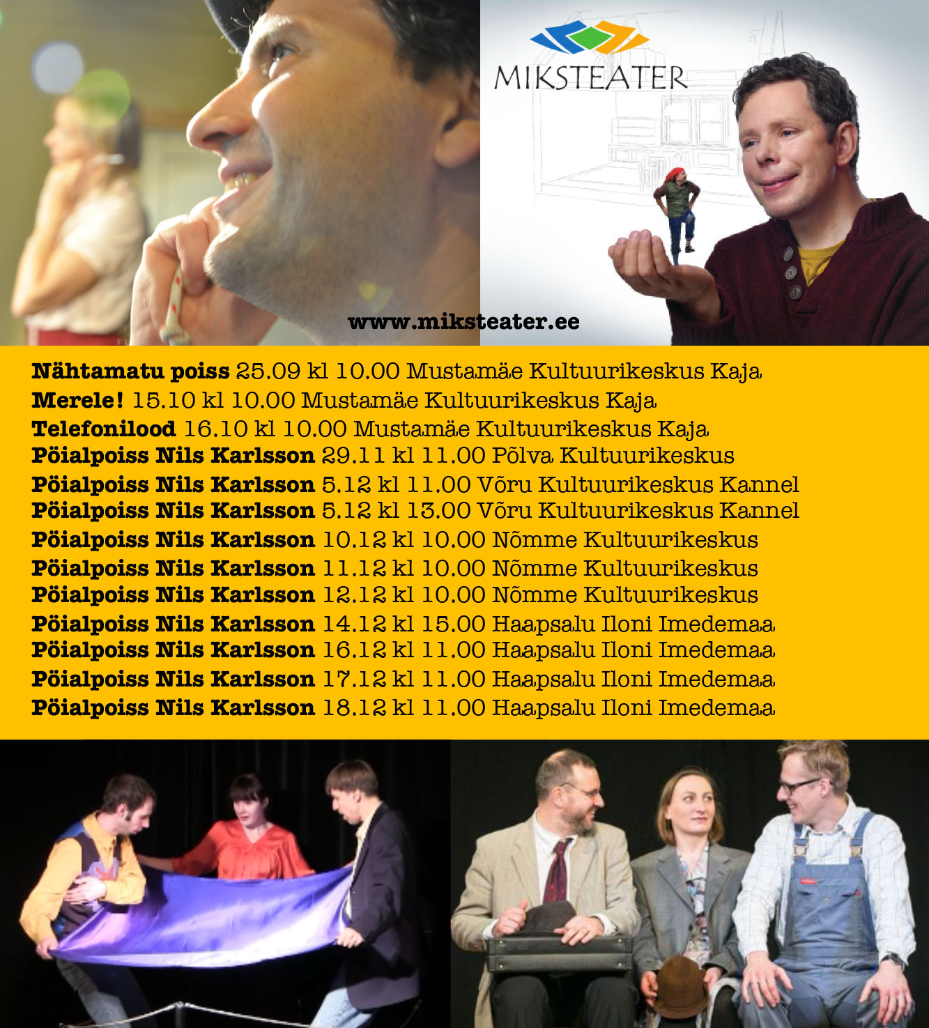 Kõiki lavastusi mängitakse ettetellimisel üle Eesti.