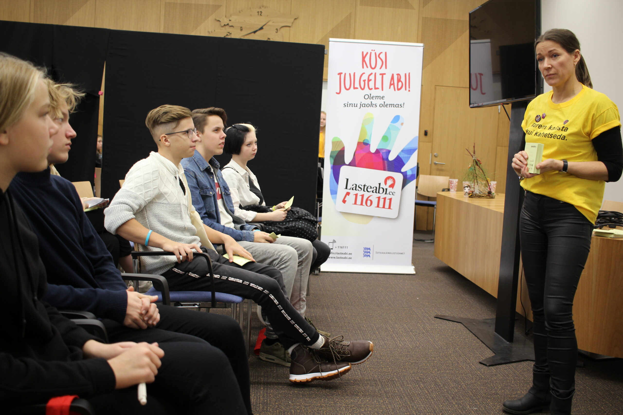 Õpilaselt õpilasele. Õpilasesinduste liidu juhatuse liige Joosep Kään viis noortekonverentsil läbi kiusamisvastase koolituse.