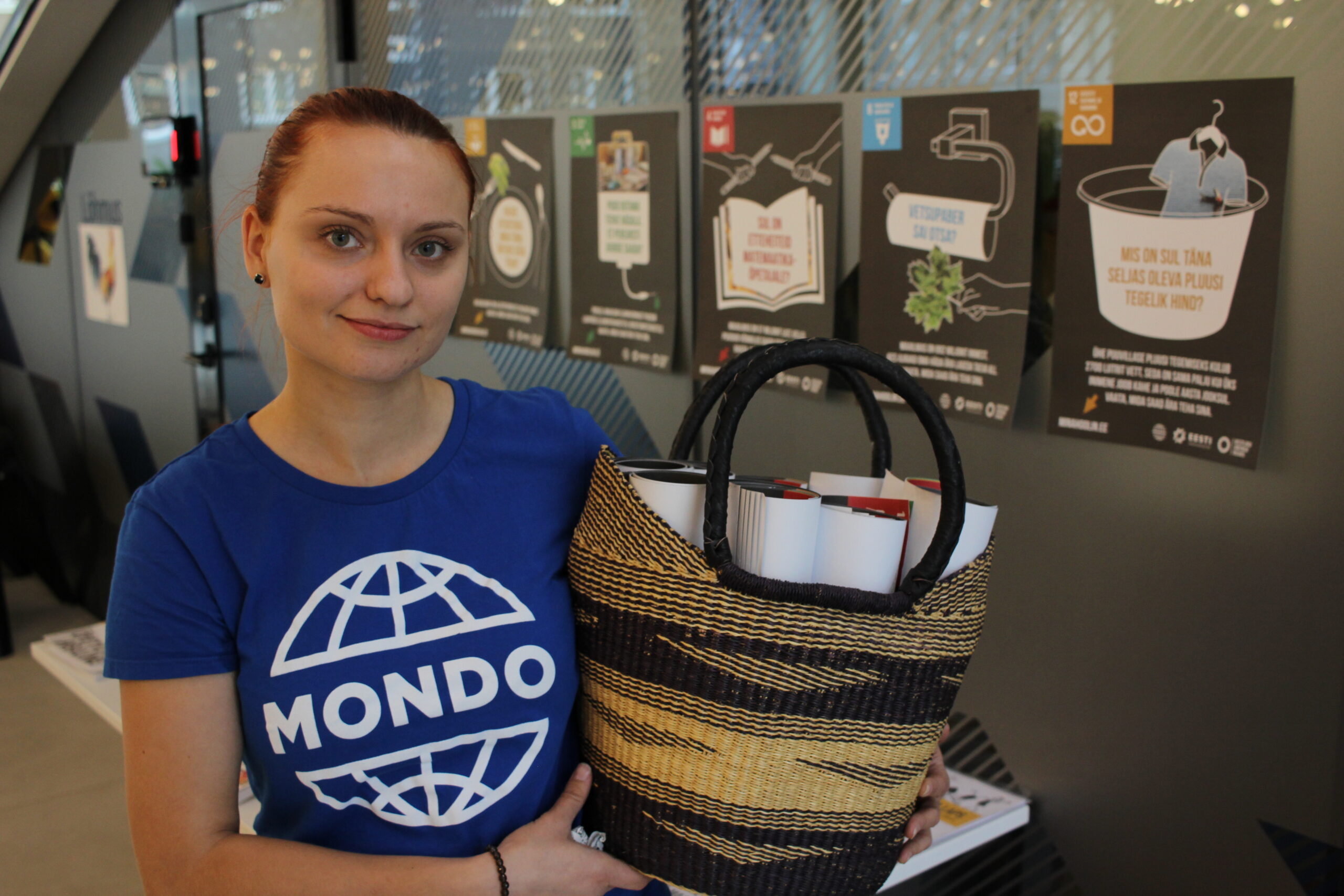 Mondo projektijuht Viktoria Rudenko tutvustas noore õigusi teistes maades. Ta hoiab käes Ghana lesknaiste punutud korvi.