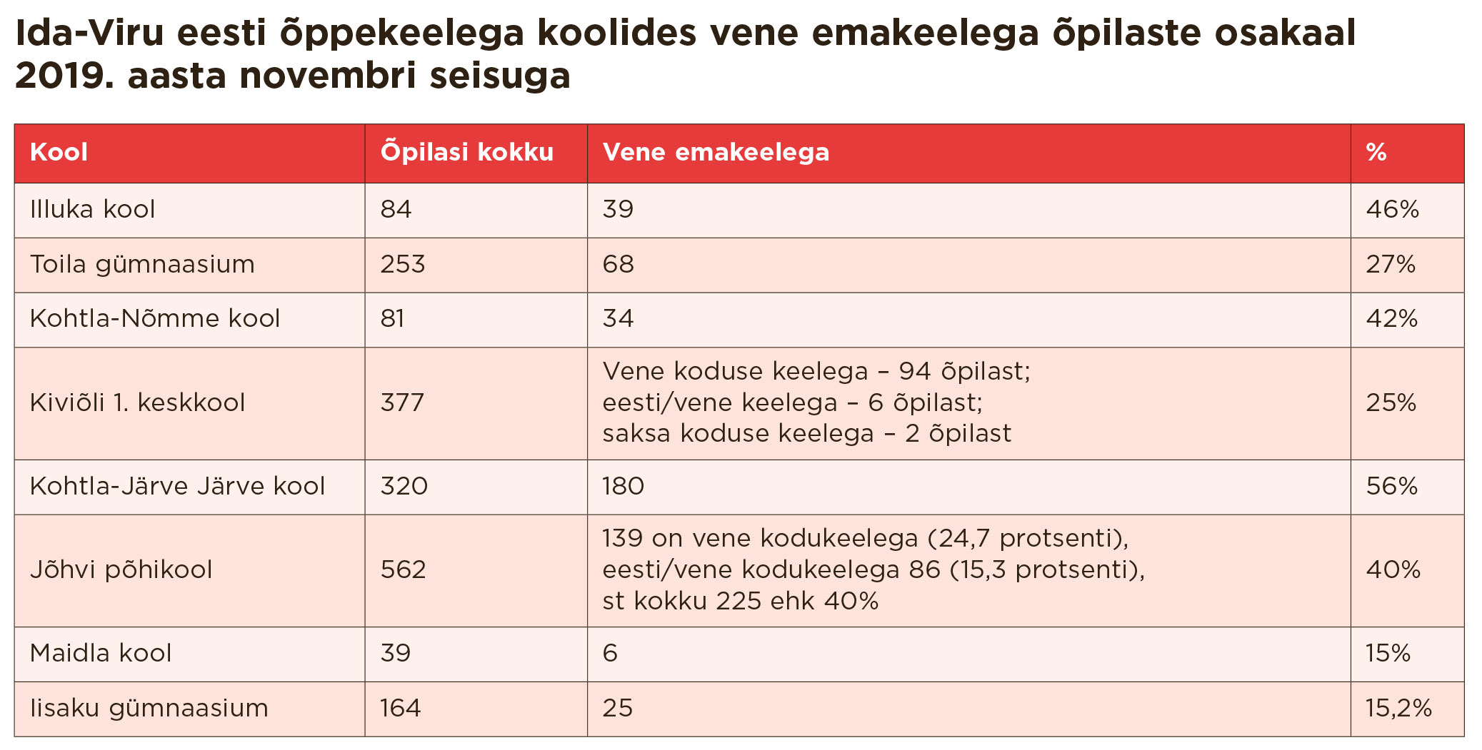 Mäletatavasti muutus tänavu aasta alguses ühtäkki väga kuumaks teemaks Ida-Virumaa koolides eestikeelse õppe korraldamine. Konkreetne vaidlusküsimus oli, kas loodav Kohtla-Järve riigigümnaasium peaks alustama täieliku või osalise eestikeelse õppekavaga.