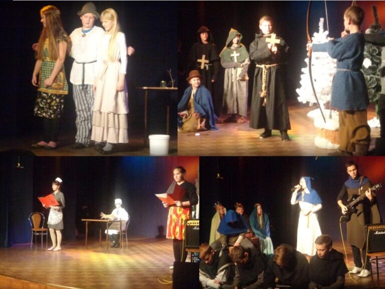 Ajalooteatri etendused olid enamasti kirjandusteoste lavastused. Näiteks lood Robin Hoodist, mida koos oma õpetajaga lavastasid Maleva põhikooli viienda-kuuenda klassi õpilased, kes alles alustavad ajalooga tutvumist, kuid said väga hästi hakkama. Laval oli päris vibuga Robin Hood, paks munk ja teised romaani tegelased, kes kõige krooniks rääkisid riimis. Lapsed esitasid laule ja tantse sellise õhinaga, et polnud kahtlust – neile meeldib see, mida nad teevad!