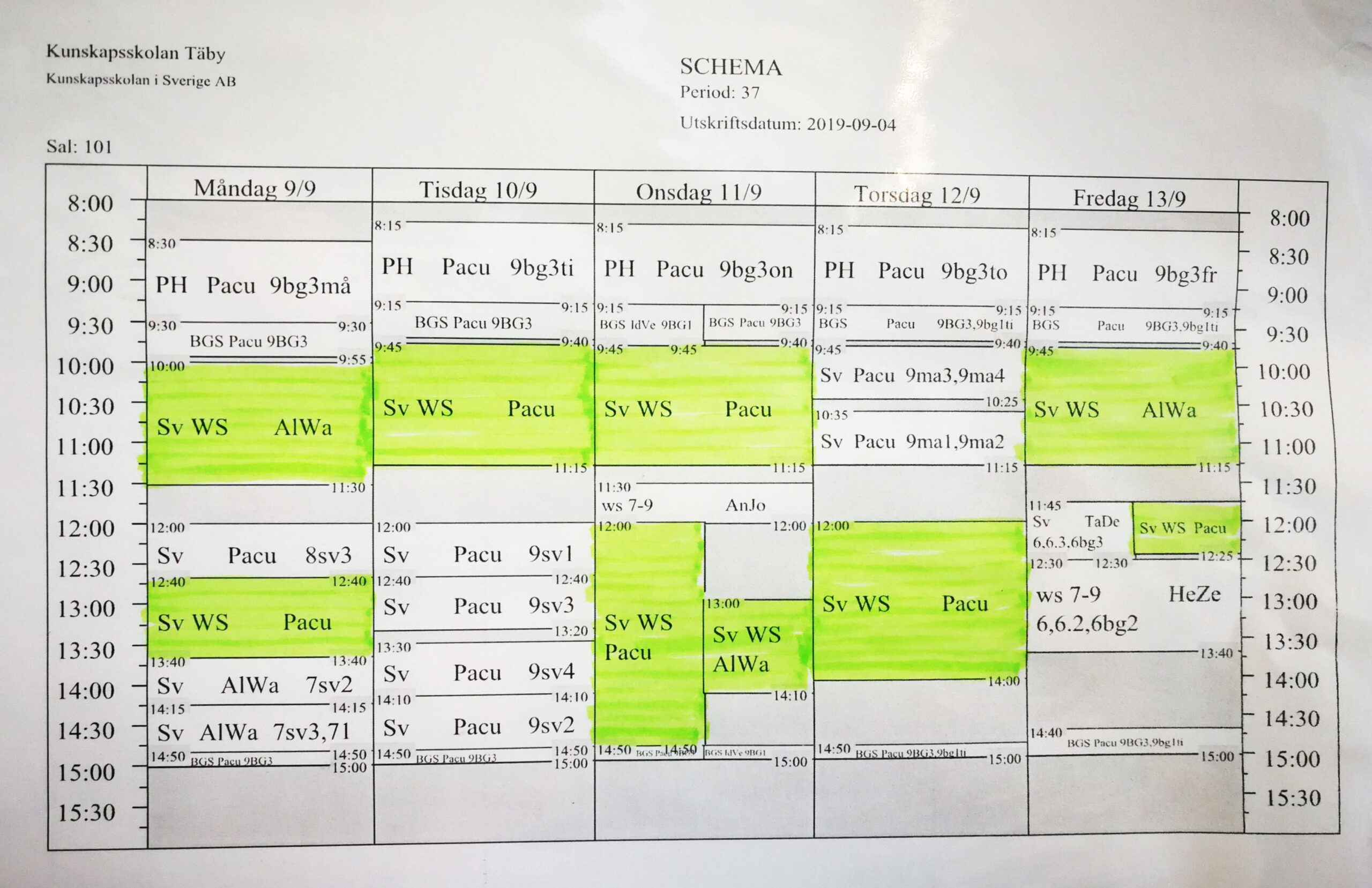 Meie koolijuhtide hulgas tekitasid diskussiooni õpikojad tunniplaanis. Põhimõtteliselt on need samad mis meil konsultatsioonid, kuid neil on eri vanuseastme õpilased koos. Selles koolis olid koos 7.–9. klassi õpilased. Matemaatika, inglise keele, rootsi keele (kui emakeele) ja kolmanda võõrkeele õpikojad toimuvad samal ajal.