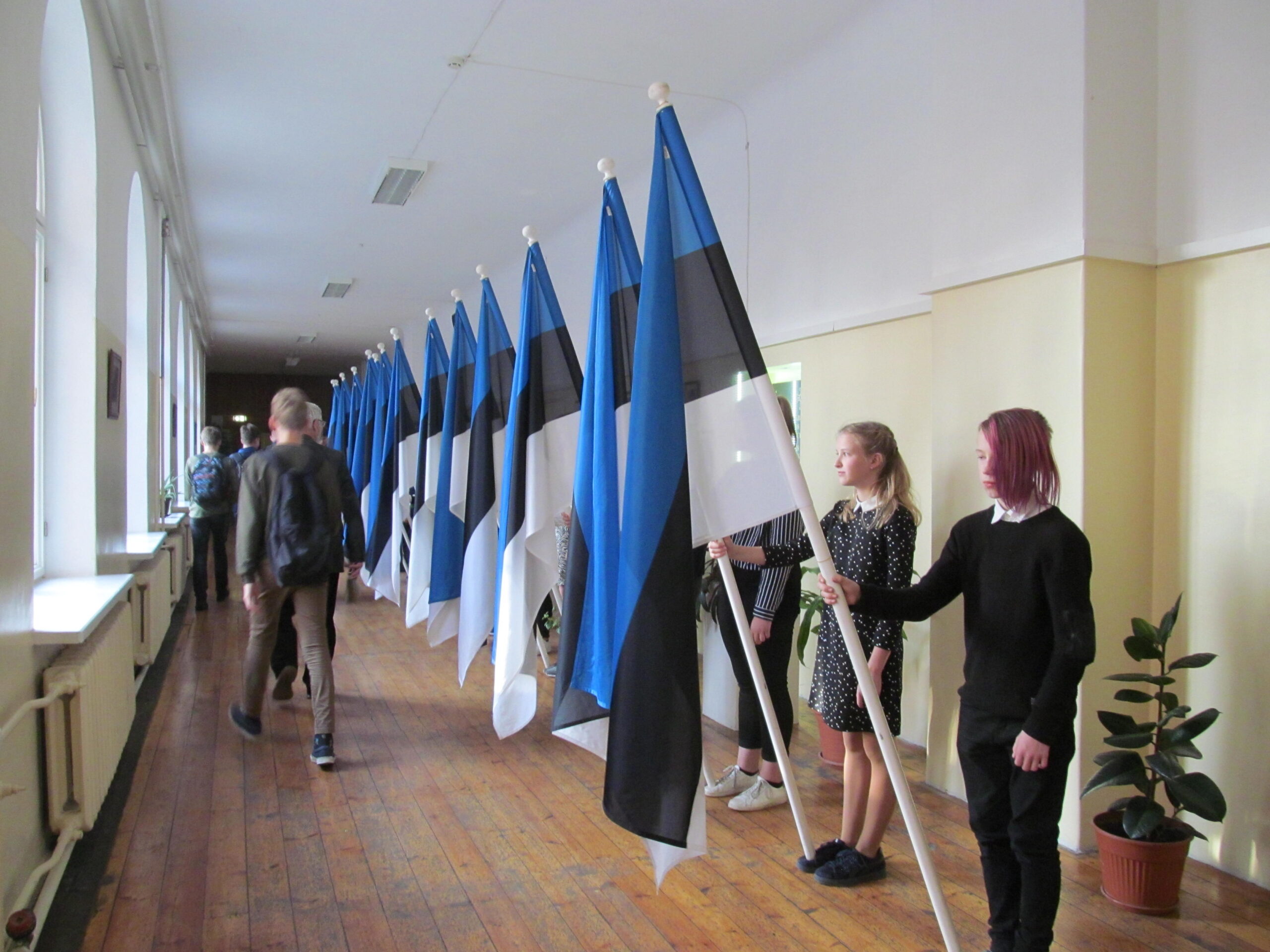Ajalooliste sündmuste puhul seisavad õpilased koolimajas lipuvalves. Seekord on need 6.a klassi õpilased. Fotod: Peeter Hütt / Tippfoto, Annika Poldre, Urmas Saard