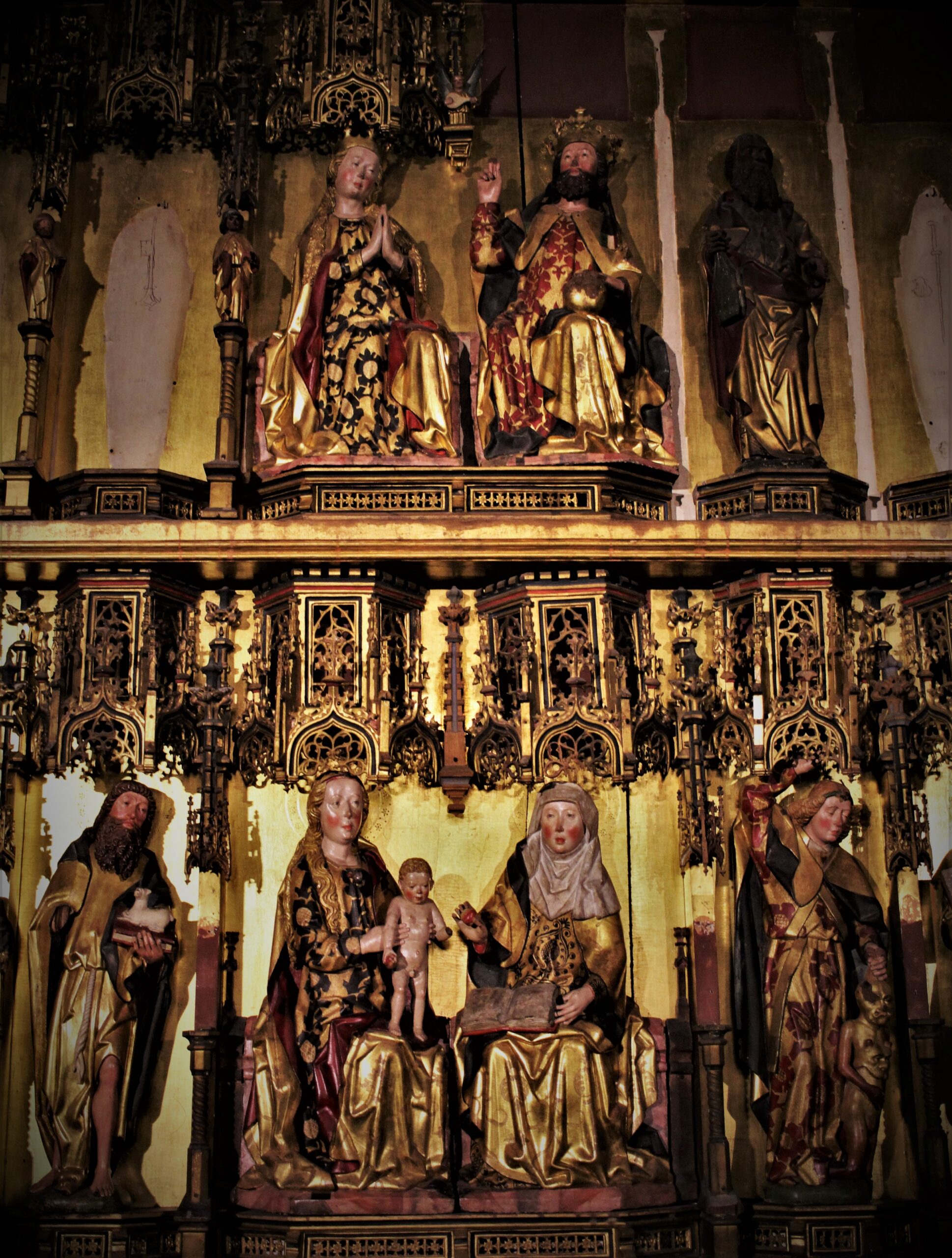 Niguliste kiriku peaaltari retaabel. Lübecki meistri Herman Rode töökoda 1478–1481. Eesti kunstimuuseum. Fotol üleval keskel istub paradiisitroonil neitsi Maarja koos teda õnnistava Kristusega. Nende all on kujutatud neitsi Maarjat koos oma ema Annaga ja Kristuslapsega.